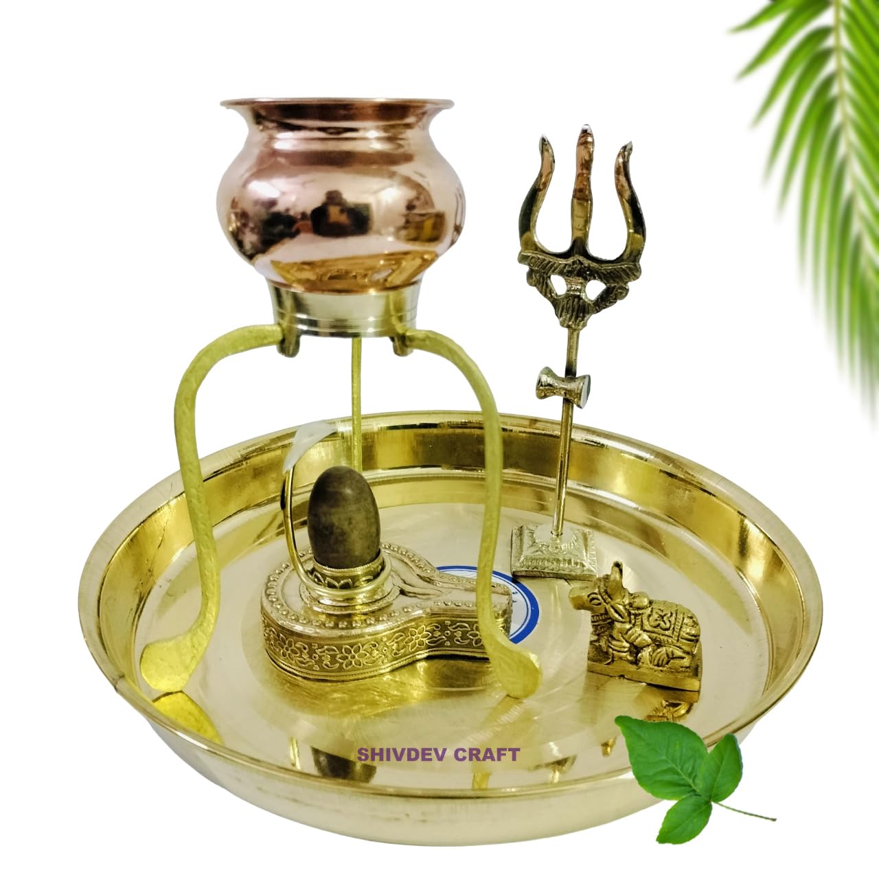 • Messing Pooja Thali Mit Shivling Ständer - Hindu Gebets-Set Für Zuhause