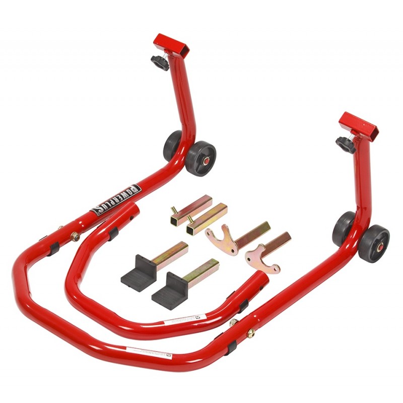 Endlich das Hinterrad deiner Yamaha MT-125 sicher und einfach hochheben! Dieser rote Montageständer ist speziell für das Modell 2020 RE39 gemacht und macht Wartungsarbeiten zum Kinderspiel. Aus robustem 32mm Stahlrohr gefertigt, hält er bombenfest. Die Breite der Aufnahmen ist mit Rändelschrauben verstellbar - passt also perfekt. Du kannst ihn entweder über die gummierten Aufnahmewinkel unter der Schwinge positionieren oder Bobbins in die V-Aufnahme einhängen. Falls du noch keine Adapterrollen hast, kannst du die separat bestellen. Super praktisch: Der Ständer ist platzsparend in 3 Teile zerlegbar und hat 4 Rollen für einfaches Verschieben. Im Lieferumfang sind schon V-Adapter und L-Adapter dabei. Kein Gutachten nötig - einfach montieren und loslegen. Ob für Ölwechsel, Kettenwartung oder Reifenarbeiten - mit diesem Ständer hast du beide Hände frei und arbeitest sicher. Ein Muss für jeden MT-125 Besitzer!