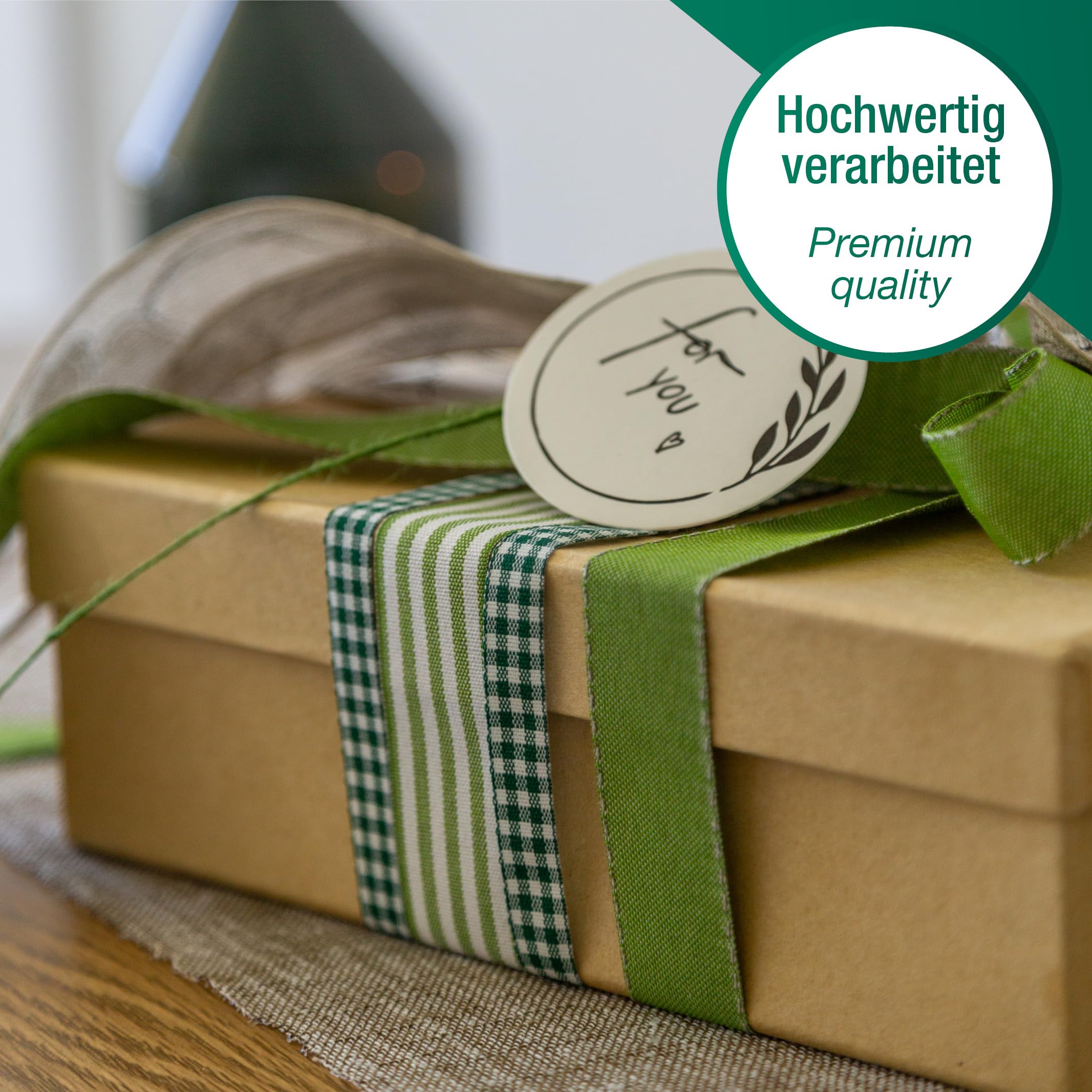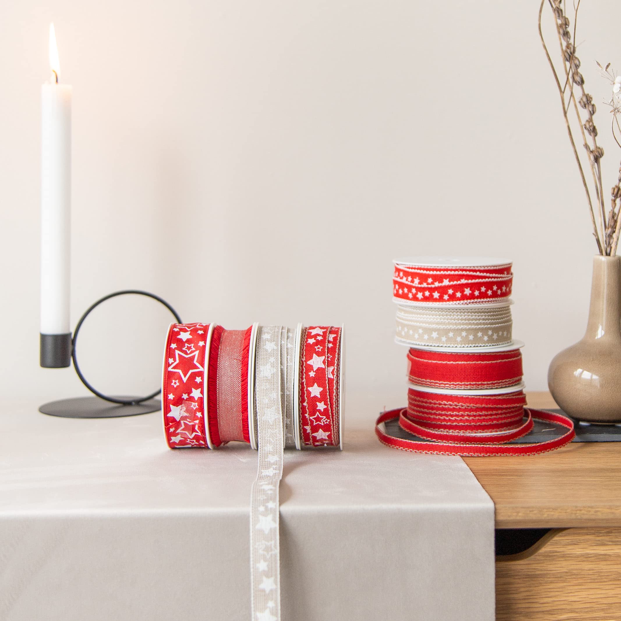 Weihnachtliche Geschenke verdienen besondere Verpackung! Dieses Premium-Geschenkband-Set von Halbach enthält 6 harmonisch abgestimmte Rollen: 2x 10mm x 5m, 2x 7mm x 6m und 2x 15mm x 4m. Mit festlichen Aufdrucken wie 'Frohe Weihnachten' machst du jedes Geschenk zum Hingucker. Seit 1933 produziert das deutsche Familienunternehmen qualitativ hochwertige Bänder - Made in Germany garantiert! Perfekt für Geschenkverpackungen, Weihnachtsbaum-Schleifen oder kreative Dekorationen. Bring Weihnachtsstil in dein Zuhause!