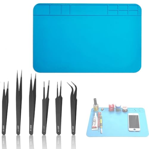 Endlich Ordnung am Arbeitsplatz! Diese praktische Lötmatte aus Silikon ist dein bester Freund bei Elektronikreparaturen. Mit 405 x 305 mm bietet sie genug Platz für deine Projekte. Das Besondere: Sie ist magnetisch! Kleine Schrauben und Teile bleiben einfach haften - nie wieder lästiges Suchen. Hält Temperaturen bis 500°C stand, also kein Problem mit heißen Lötkolben. Tropfender Lötzinn oder Kleber? Einfach mit Wasser abwaschen oder abziehen - keine Rückstände! Die 8 mm Stärke schützt deinen Tisch vor Hitze und Kratzern. Perfekt für Hobby-Elektroniker, Modellbauer oder Handwerker. Macht das Arbeiten sauberer, sicherer und organisiert. Ein Must-have für jede Werkstatt!