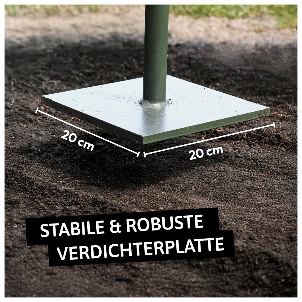 Für alle, die im Garten oder auf der Baustelle Boden verdichten müssen: Dieser Handstampfer von SattesGrün ist dein bester Freund! Mit 9,3 kg Gewicht und einer Stampffläche von 20x20 cm bringst du jede Erde ins Reine. Der stabile Stahlkörper hält ewig und der ergonomische T-Griff in 86 cm Höhe macht das Arbeiten richtig komfortabel. Kein lästiges Bücken mehr! Ob du Pflasterflächen ebnen, Fundamente vorbereiten oder einfach nur Erde verdichten willst - dieser Stampfer macht's möglich. Und das Beste: Er braucht keinen Strom, du bist komplett unabhängig. Einfach in die Hand nehmen und stampfen! Perfekt für Heimwerker, Gärtner oder kleine Bauprojekte. Robust, zuverlässig und made to last. Damit wird jede Verdichtungsarbeit zum Kinderspiel!