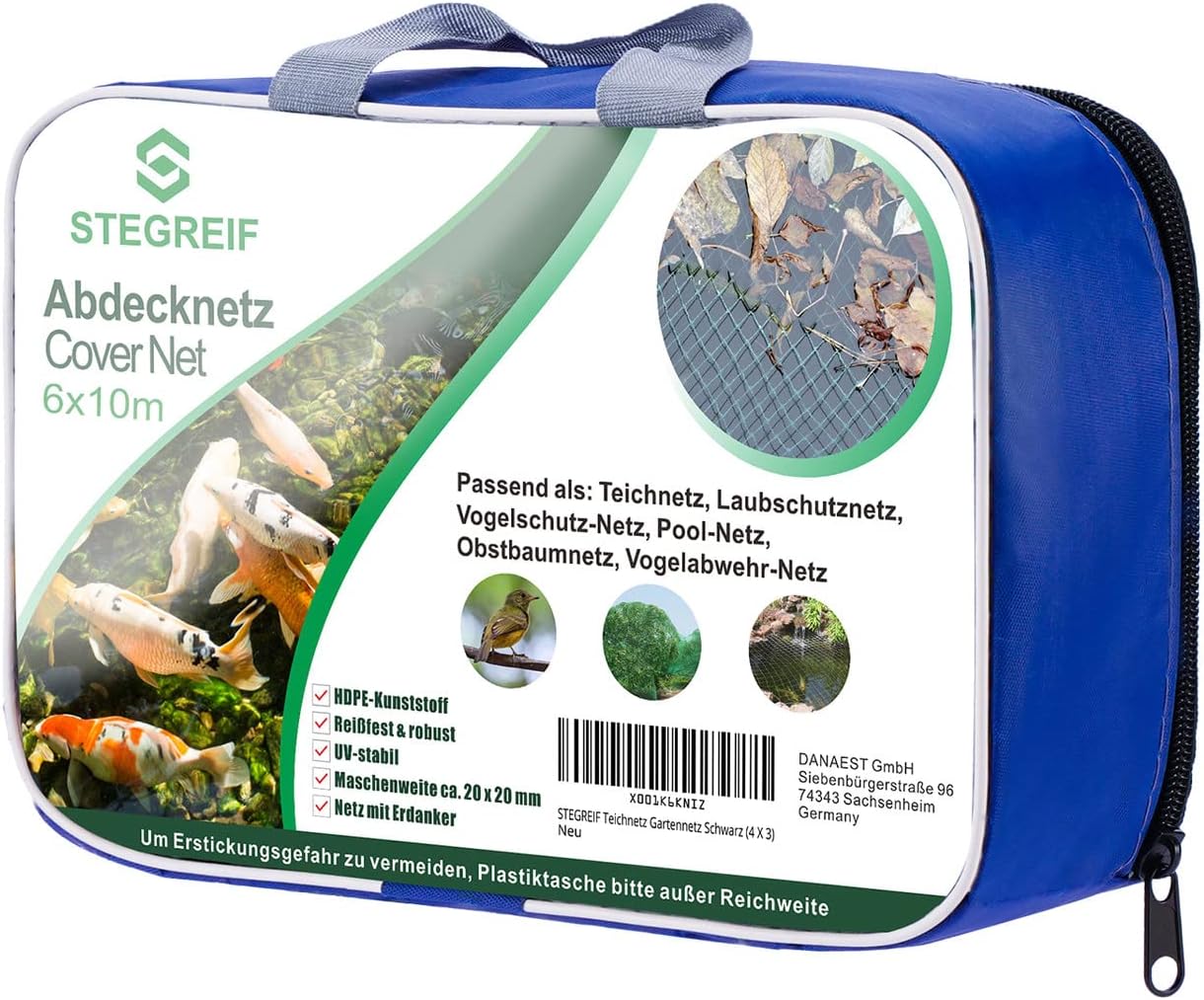Dieses Premium Teichnetz ist die Rettung für jeden Teichbesitzer! Mit 4x3 Metern Größe passt es auf die meisten Gartenteiche. In dezentem Schwarz/Grün ist es fast unsichtbar auf dem Wasser - stört also nicht den natürlichen Look deines Teiches. Die feinen Maschen fangen zuverlässig Laub, Äste und anderen Abfall auf, bevor er deinen Teich verschmutzt. So hast du weniger Arbeit mit Reinigen und beugst Algenwachstum vor. Im Lieferumfang sind praktische Erdspieße enthalten - damit das Netz sicher befestigt ist, auch bei stärkerem Wind. Super einfach zu montieren und wieder zu entfernen. Schützt deine Fische vor Reihern und anderen Fressfeinden. Aus robustem Material, das mehrere Saisons hält. Ob im Herbst gegen Laub oder ganzjährig zum Fischschutz - dieses Netz ist ein Must-Have für jeden Teich. Dein Teich bleibt sauber und deine Fische sicher!