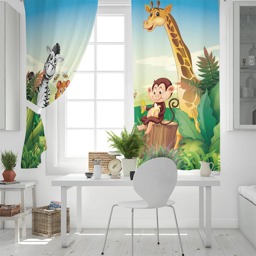 Oh, wie süß! Diese Zoo-Tiere Vorhänge verwandeln jedes Kinderzimmer in eine echte Safari-Landschaft. Mit Giraffen, Elefanten, Zebras und Affen - einfach bezaubernd! Jedes Panel ist 175cm hoch und 140cm breit, im Set sind zwei Stück enthalten. Aus weichem 100% Polyester, super pflegeleicht und angenehm in der Hand. Die Vorhänge sind nicht komplett blickdicht, aber dunklere Farben halten mehr Licht ab. Perfekt fürs Kinderzimmer, Wohnzimmer oder auch fürs Wohnmobil. Mit den praktischen Ösen oben einfach aufzuhängen und gleitet super leicht. Maschinenwaschbar bei 30 Grad - also kein Problem wenn mal was daneben geht. Ein tolles Geschenk zu Geburtstag, Weihnachten oder einfach so. Dein Kind wird begeistert sein!