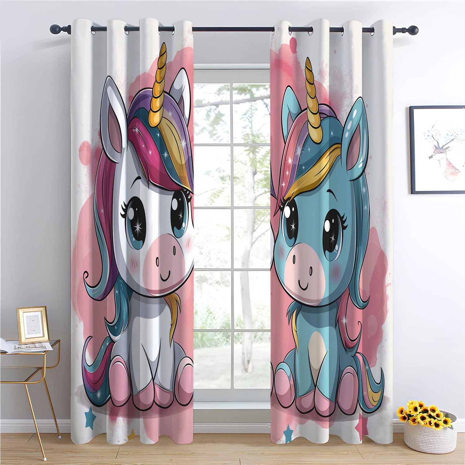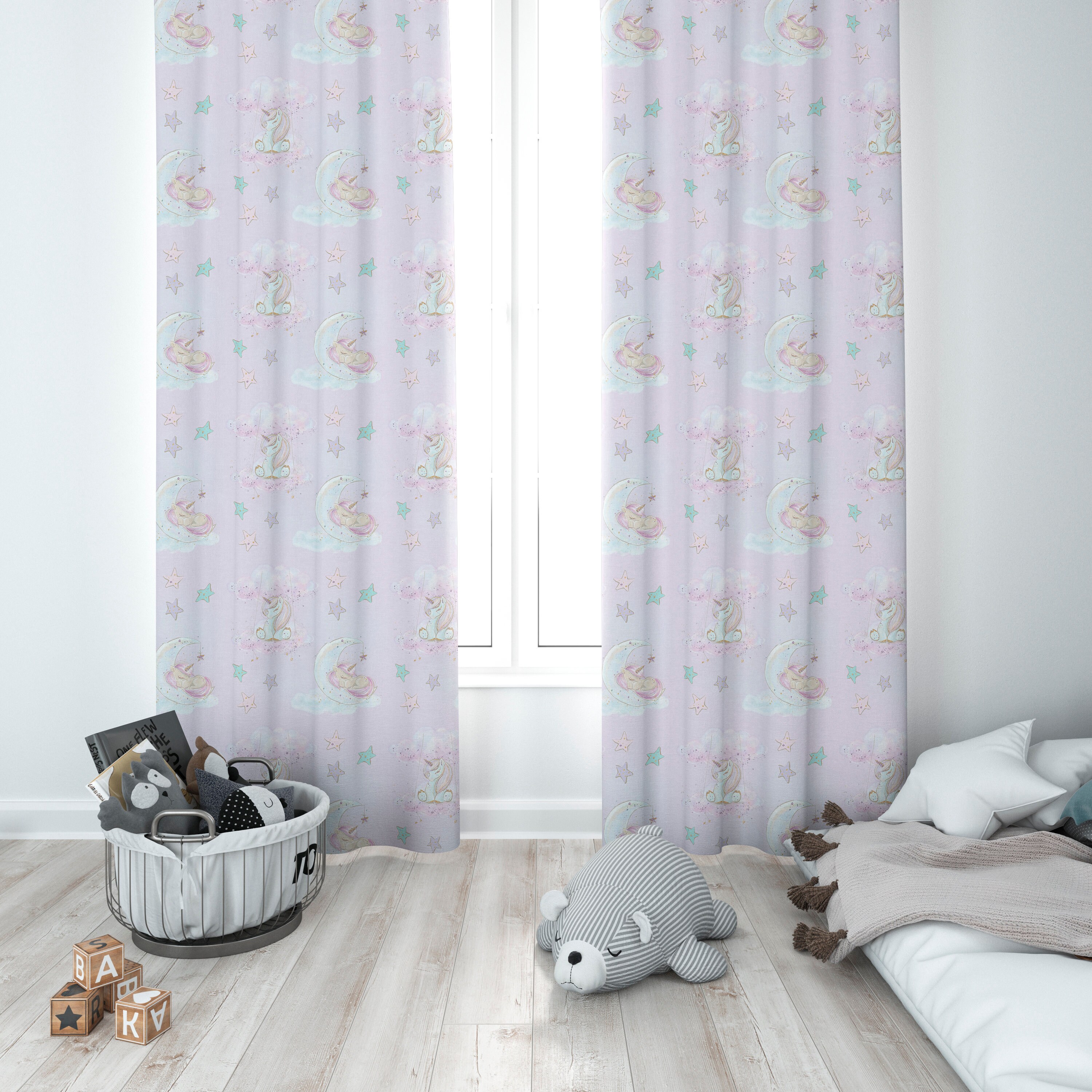 Magische Einhorn-Vorhänge fürs Kinderzimmer! Das 2er-Set in 245x140cm (HxB) bringt Farbe ins Zimmer und dunkelt es gut ab. Mit süßen Einhörnern, Blumen und Sternen - dein Kind wird begeistert sein!