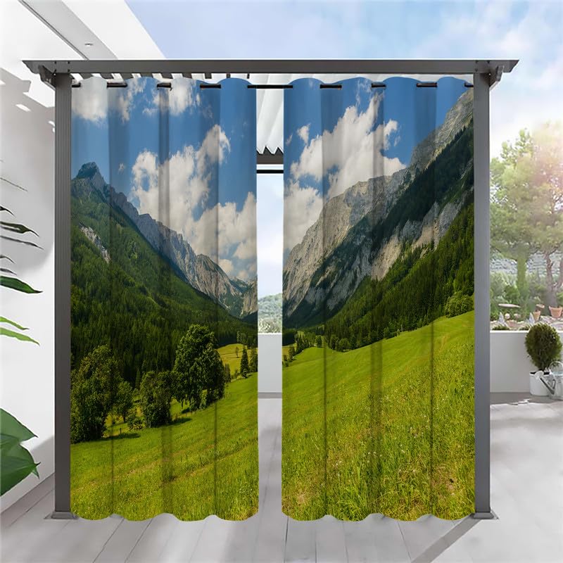 Boah, diese Outdoor-Vorhänge von buyluhn sind ja mal die perfekte Lösung für Terrasse, Balkon oder Pavillon! Das 2er-Set mit je 155x200 cm Größe bietet dir prima Sichtschutz und Schutz vor Wind und Wetter! Das coole Berg-Motiv im 3D-Druck sieht mega aus und verblasst nicht in der Sonne! Aus dreischichtig gewebtem Polyester - außen wasserdicht, innen blickdicht! Hält dir im Sommer die Hitze fern und im Herbst die Kälte draußen! Mit praktischen Ösen für easy Montage - einfach über die Stange ziehen und fertig! Die Verschlussschlaufen halten die Vorhänge schön in Form und ordentlich! Perfekt für Pavillons bis 3x3 Meter oder für deine Terrasse! Sieht nicht nur gut aus, sondern ist auch super praktisch! Einfach mal ausprobieren - dein Outdoor-Bereich wird sofort viel gemütlicher! Übrigens: Bei Nichtgebrauch am besten trocken lagern, dann halten die Vorhänge ewig!