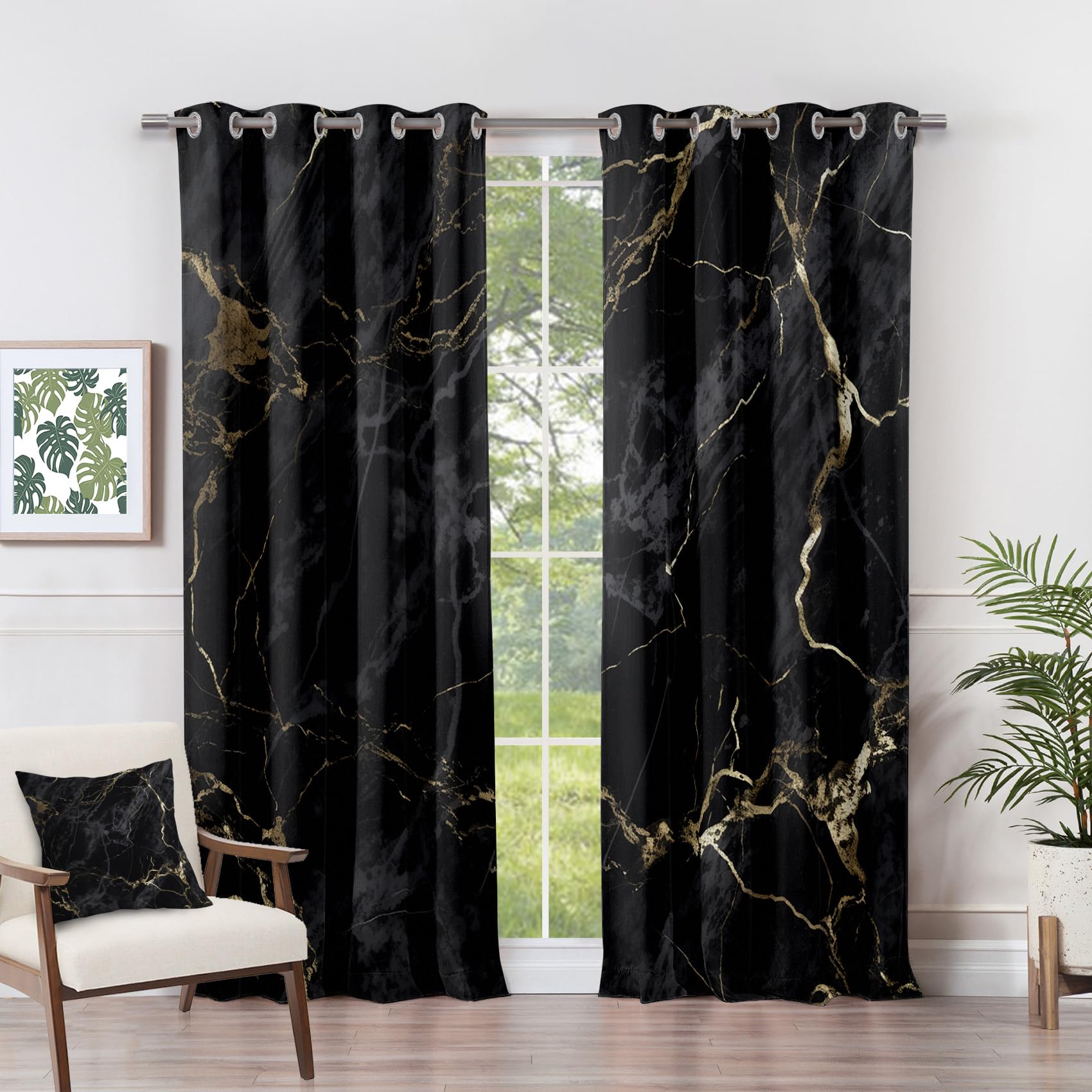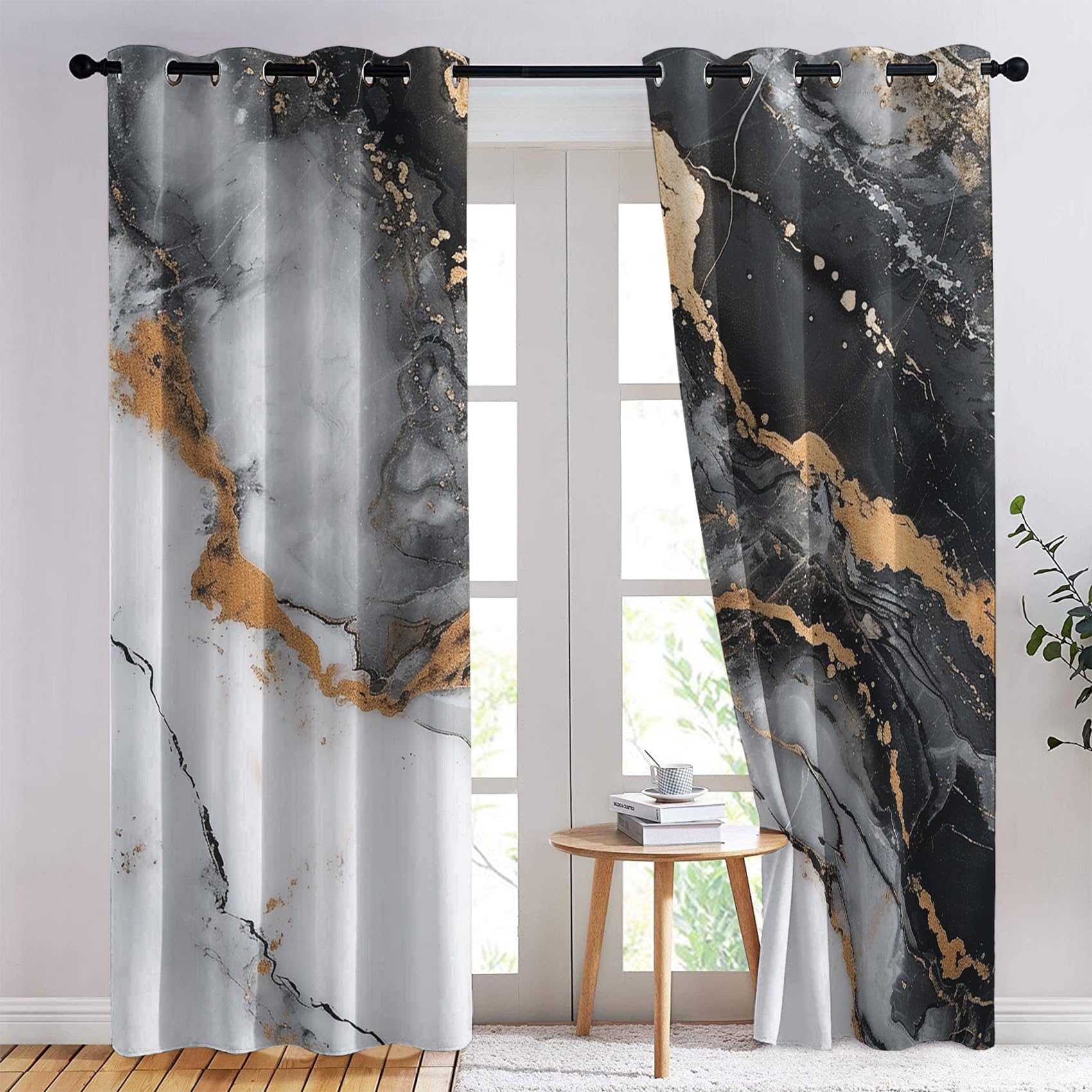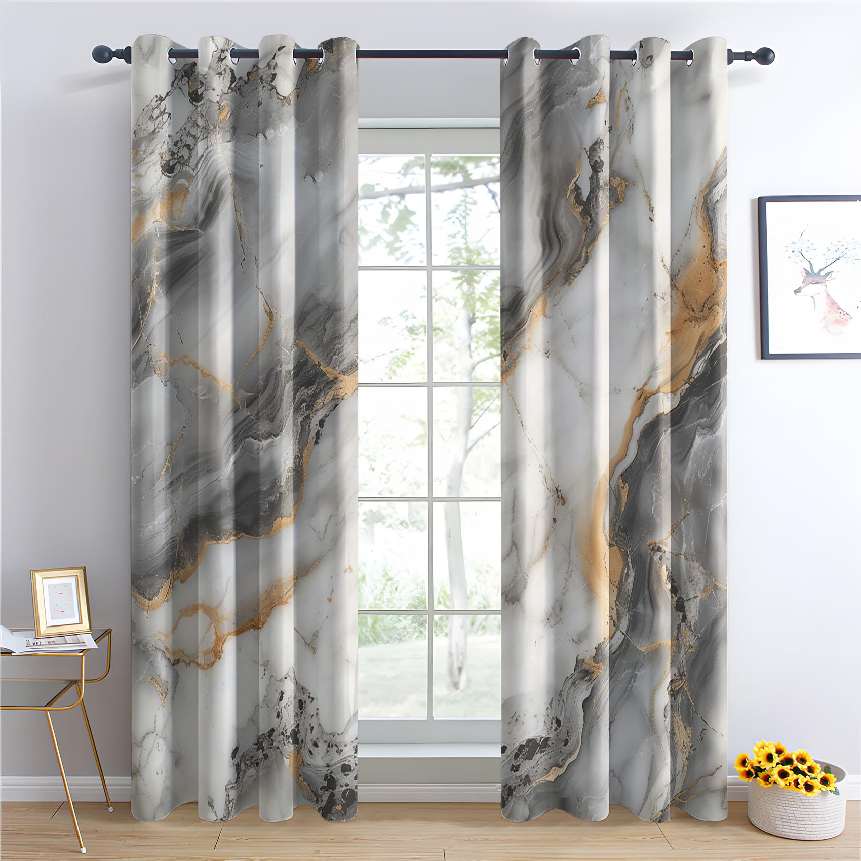 • 2er Set Orange Marmor Vorhänge - Blickdicht Für Wohnzimmer & Schlafzimmer