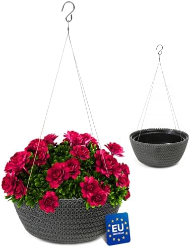 Schwebende Blumenpracht für dein Zuhause! Dieses 2er-Set Hängeblumentöpfe in 16,5cm Durchmesser verwandelt deinen Balkon, Garten oder Wohnraum in eine grüne Oase. Mit praktischen Abflusslöchern und Stopfen für optimale Bewässerung. Die stabilen Ketten halten sicher und sind einfach zu befestigen. Aus robustem Harz, wetterbeständig und langlebig - hält sogar menschlichem Gewicht stand! Ideal für Hydrokultur und Erde. Perfekt für hängende Pflanzen wie Petunien, Fuchsien oder Efeu. Schafft platzsparend mehr Grün und bringt Leben in jede Ecke. Einfach bepflanzen, aufhängen und die Schönheit genießen! Auch ein tolles Geschenk für Gartenfreunde. Maße: 16,5x11x7,8cm, Gewicht: 220g.