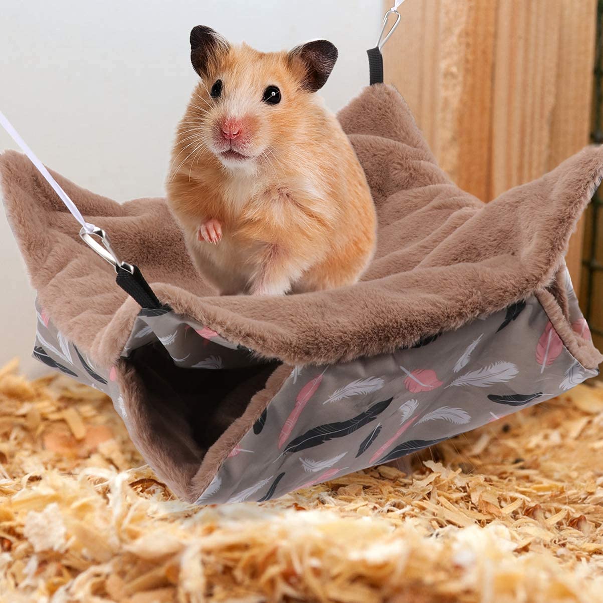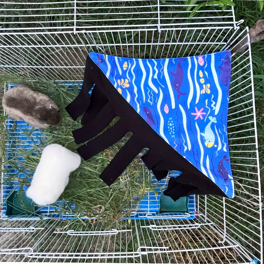 Deine kleinen Lieblinge werden diese kuscheligen Hängematten lieben! Im Set sind 2 Stück in blau und grün enthalten - perfekt für Meerschweinchen, Hamster, Ratten oder Frettchen. Aus weichem, strapazierfähigem Material gefertigt, das super gemütlich ist und lange hält. Das zweistöckige Design bietet verschiedene Ebenen zum Klettern und Ausruhen. Einfach mit den Metallhaken im Käfig befestigen und schon haben deine Tiere ihren eigenen Luxus-Schlafplatz. Besonders im Winter sorgt die Hängematte für wohlige Wärme. Leicht zu reinigen und ein echter Hingucker in jedem Käfig!