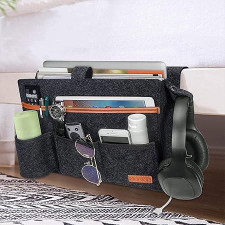 Schlafzimmer-Fans, diese praktische Betttasche bringt Ordnung ans Bett! Aus weichem Filz, 32x10x20cm groß. Mehrere Fächer für Handy, Tablet, Brille, Fernbedienung und Bücher. Mit Ladekabel-Löchern für nächtliches Aufladen. Einfach an Bettgestell oder Sofa hängen - kein Bohren nötig. Trägt bis zu 20 Pfund (ca. 9kg). Macht lästiges Suchen im Dunkeln überflüssig. Waschmaschinenfest und kratzfrei. Perfekt für Schlafzimmer, Wohnzimmer oder Studentenwohnheim. Spart Platz auf dem Nachttisch und sieht dabei noch stylisch aus. Also, schafft euch Ordnung direkt am Bett - praktisch, platzsparend und super organisiert!