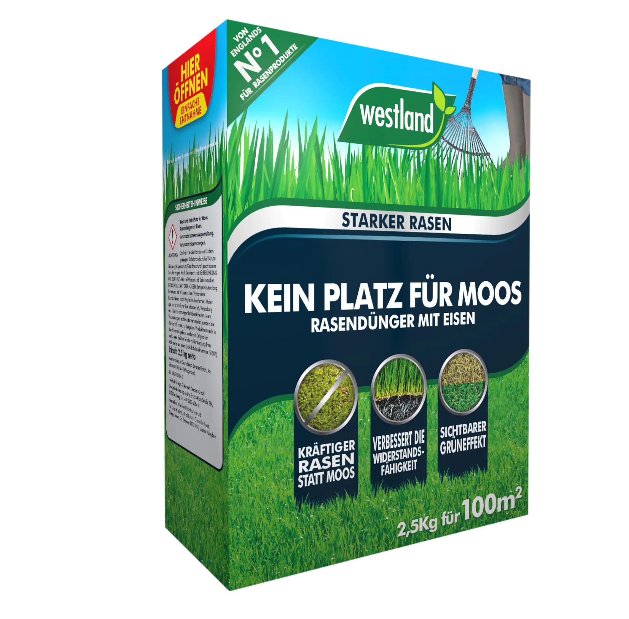 Endlich ein moosfreier Rasen! Der Westland Rasendünger stärkt deine Gräser und verdrängt lästiges Moos natürlich. Mit spezieller NPK-Formel für kräftiges Wurzelwachstum und sattes Grün. Einfach ausstreuen - am besten zwischen März und September. Umweltfreundlich und nitratfrei, also gut für Grundwasser und Tiere. Für Rasenflächen ab 6 Monaten. Nach dem Düngen gut wässern und schon wird dein Rasen zum Blickfang! INHALT: 2,5 kg | ANWENDUNGSZEIT: März-September | WIRKUNG: Gegen Moos, für dichten Rasen | INHALTSSTOFFE: NPK-Dünger | BESONDERHEIT: Nitratfrei, umweltschonend | ANWENDUNG: Mit Hand oder Streuwagen | VORGEHEN: Alle 7 Wochen düngen | GEEIGNET: Für Rasen ab 6 Monaten | NACHBEHANDLUNG: Regelmäßig wässern | SICHERHEIT: Handschuhe tragen
