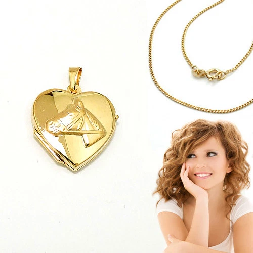 Herz Medaillon 333 Gold - Foto-Anhänger Für 2 Bilder, Mit Kette
