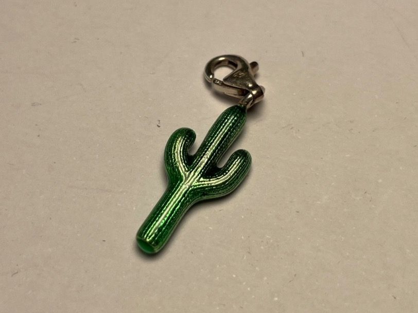 Dieser niedliche Kaktus-Anhänger von Thomas Sabo bringt frischen Wind in deine Schmucksammlung! Hergestellt aus hochwertigem 925er Sterlingsilber und mit 750er Gelbgold vergoldet, ist er ein echter Hingucker. Der charmante Kaktus sitzt in einem Blumentopf mit Korboptik und sieht täuschend echt aus.\n\nBesonders liebevoll: Die von Hand bemalte grüne Kaltemaille und die pinkfarbenen Steinbesätze als Blüten verleihen dem Anhänger lebendige Farbakzente. Die feinen Punkte als Kaktusstacheln und der bunte Steinbesatz am Blumentopf machen jedes Detail perfekt.\n\nMit Maßen von 28 x 10 mm ist der Anhänger nicht zu groß und nicht zu klein - genau richtig als dezenter Blickfang. Perfekt um ihn an deinem Charm-Armband oder einer Halskette zu tragen.\n\nIdeal als Geschenk für besondere Anlässe oder einfach als Glücksbringer für dich selbst. Thomas Sabo steht für höchste Qualität und durchdachtes Design - das merkst du bei diesem bezaubernden Stück sofort!\n\nOb für Naturliebhaber, Sukkulenten-Fans oder einfach für alle, die besonderen Schmuck zu schätzen wissen - dieser Kaktus-Anhänger ist immer die richtige Wahl. Einfach bezaubernd!