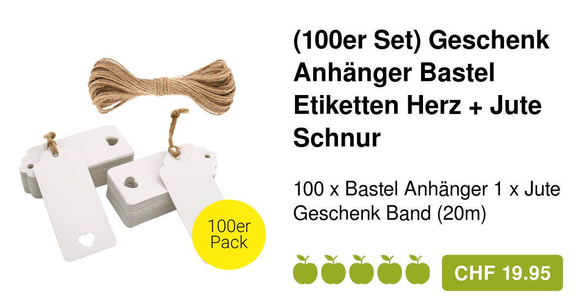 Wow, dieses Set mit 100 herzförmigen Geschenkanhängern ist perfekt für alle, die gerne personalisieren! Aus stabilem Kraftpapier - die knicken nicht so leicht ein und haben viel Platz für eure individuellen Sprüche. Die 20 Meter Juteschnur in Naturfarbe gibt dem ganzen diesen rustikalen, modernen Look. Super für Hochzeitsgeschenke, Geburtstagsüberraschungen, Valentinstag oder Weihnachtspräsente! Ihr könnt Namen, Daten oder liebe Botschaften draufschreiben - eurer Kreativität sind keine Grenzen gesetzt. Auch toll für kleine Businesses die ihre Produkte verschönern wollen. Einfach beschriften, ans Geschenk binden und damit wird jede Aufmerksamkeit zum besonderen Hingucker! Das 100er Pack reicht für mehrere Events oder zum Teilen mit Freunden. Einfach bestellen und sofort loslegen mit dem Verschönern!