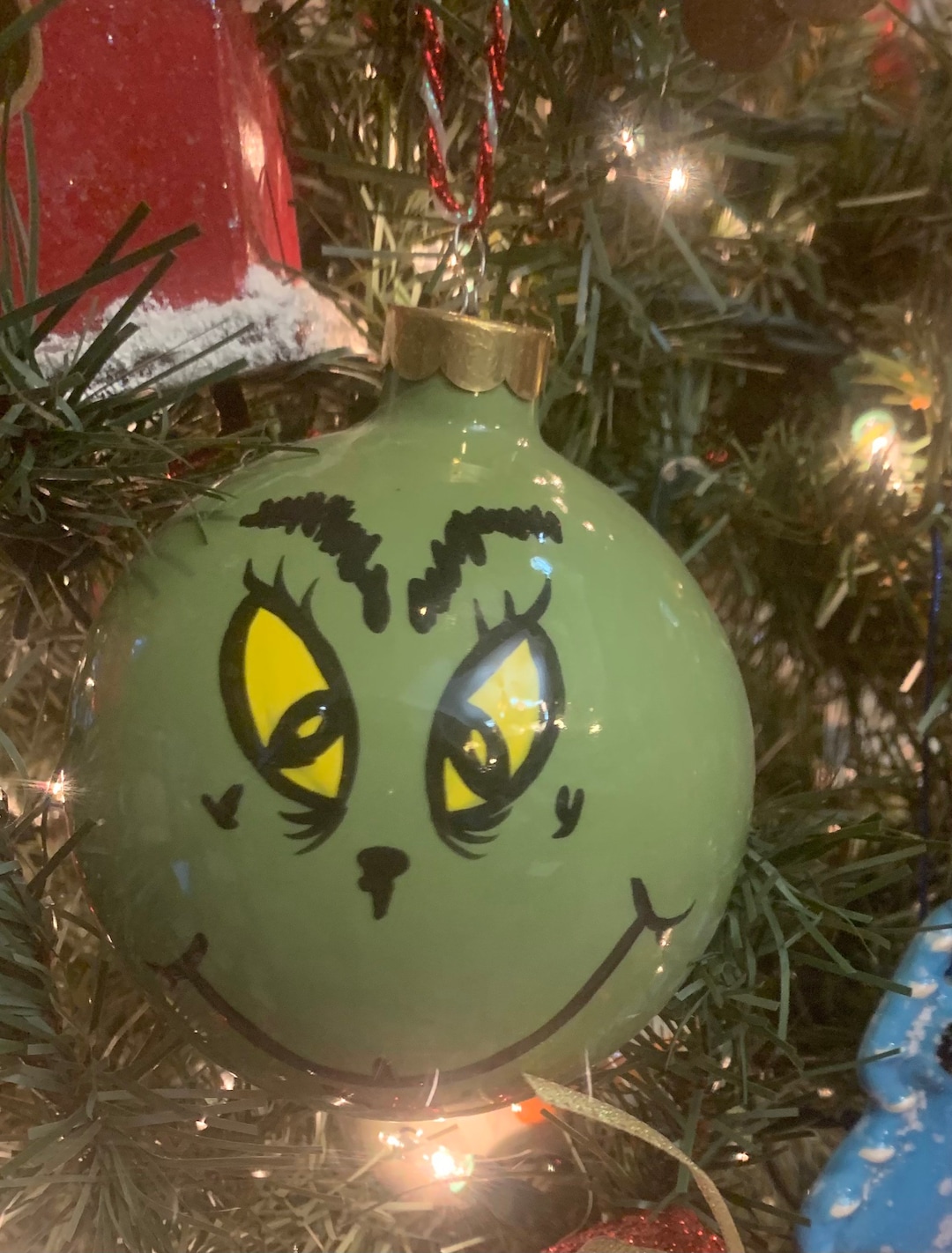 Handbemalt und voller Details - ein echter Hingucker am Baum, am Türkranz oder als Deko für die Fensterbank. Auch super als Geschenk für Grinch-Fans oder als Accessoire für die Weihnachtsparty.