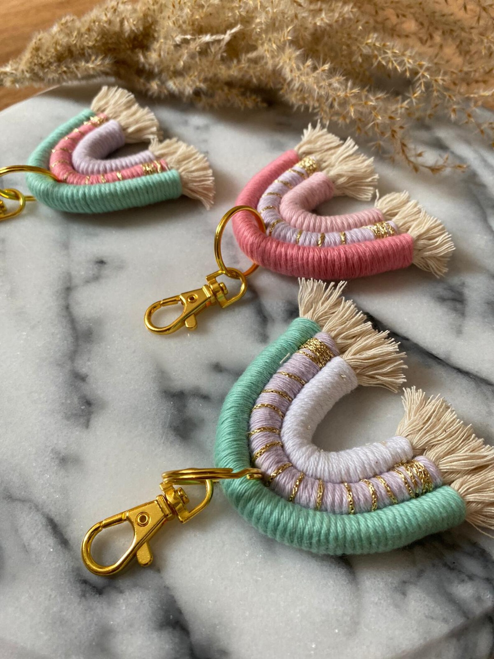 • Boho Regenbogen Schlüsselanhänger - Makramee Quaste Keychain Für Mädchen & Frauen