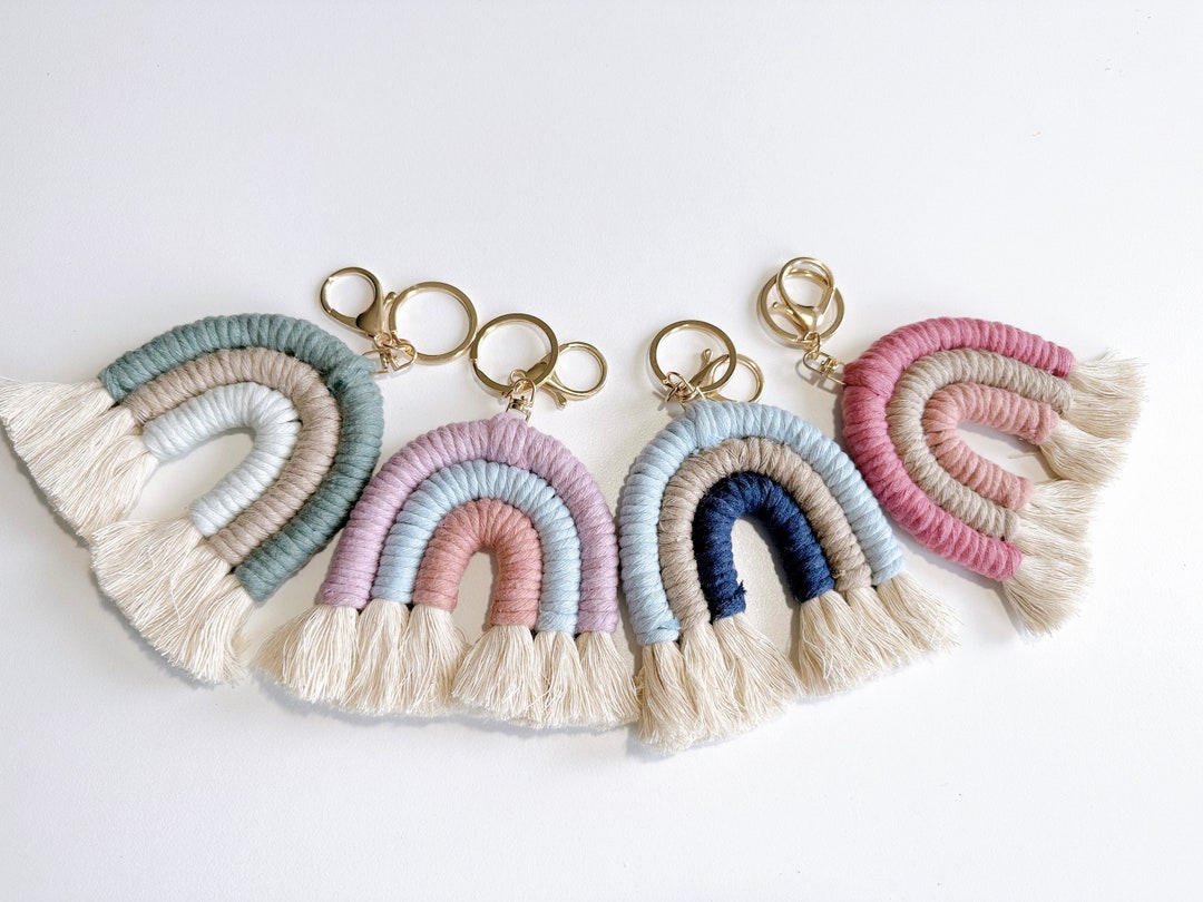Boho Regenbogen Schlüsselanhänger - Makramee Quaste Keychain Für Mädchen & Frauen