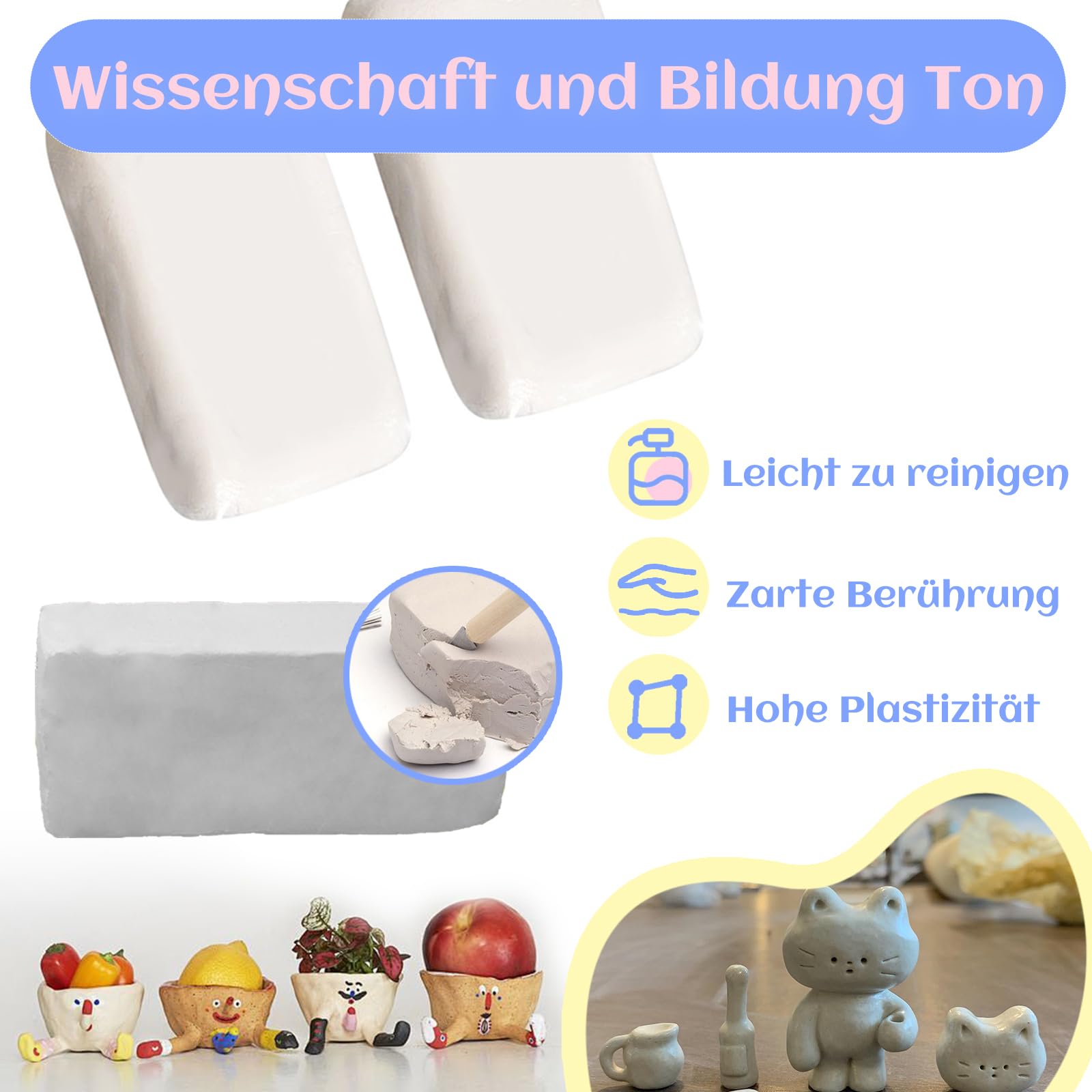 • Töpfer Set Für Anfänger Mit 1kg Lufttrockenem Ton - DIY Kreativset Für Erwachsene Und Kinder