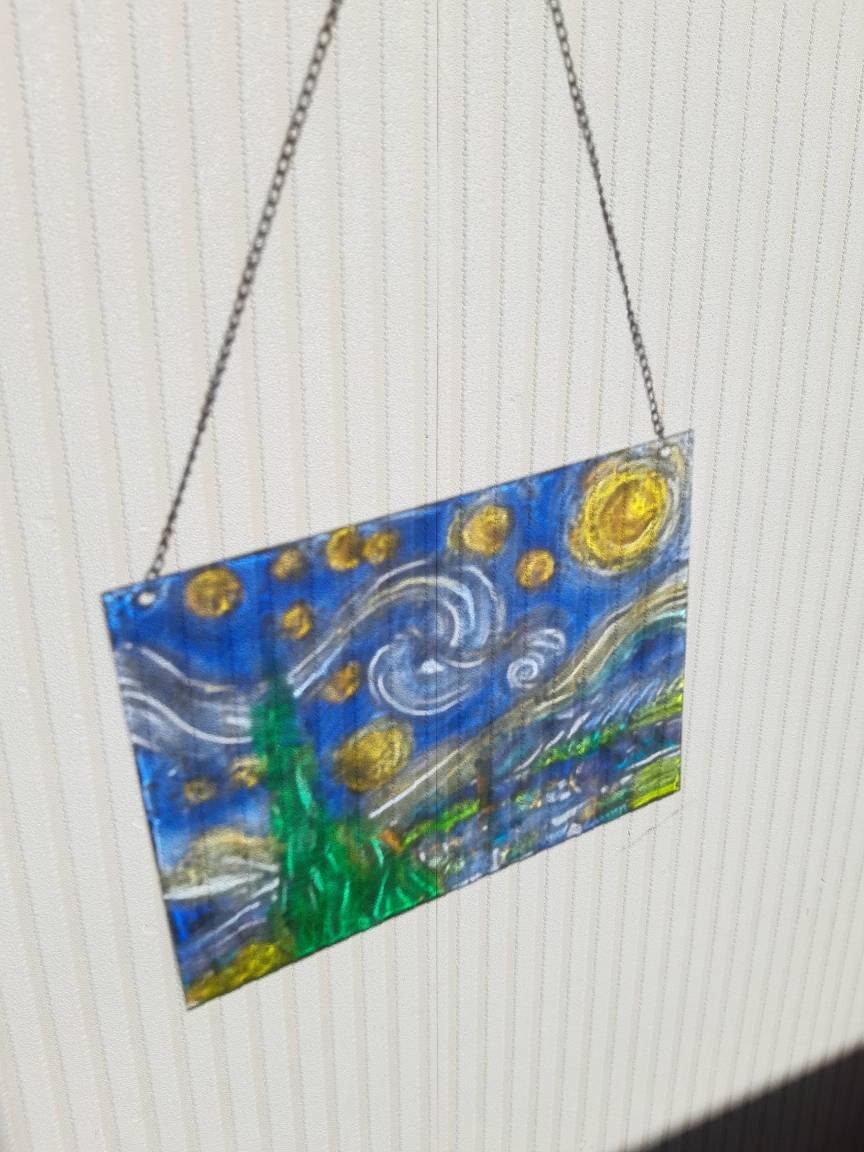 Bring Farbe in dein Zuhause! Dieser Sonnenfänger mit Van Goghs berühmter 'Sternennacht' verwandelt Sonnenlicht in ein faszinierendes Farbenspiel. Aus hochwertigem Acryl gefertigt, ist er leicht aber dennoch langlebig und verblasst nicht in der Sonne.