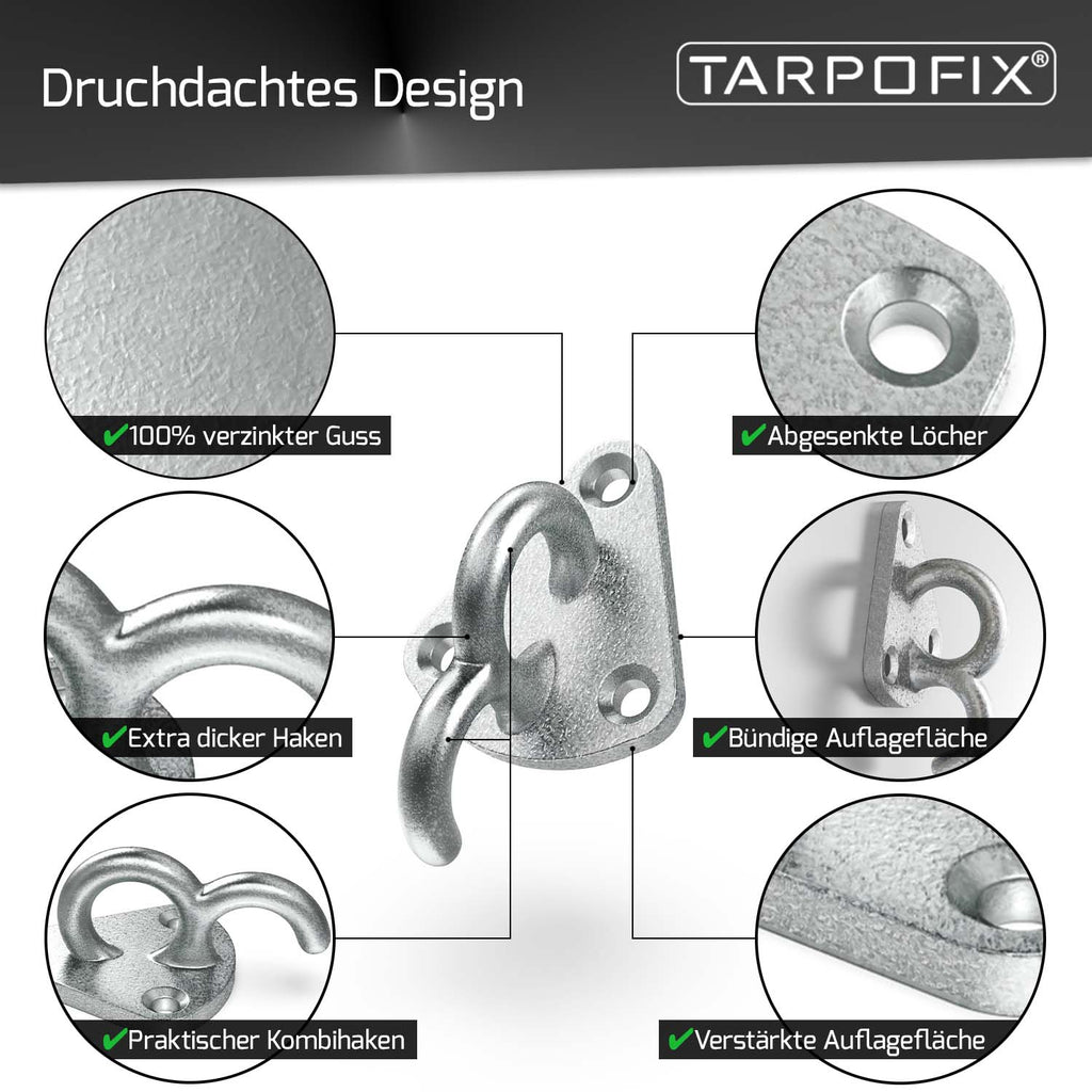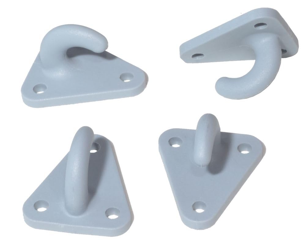 Diese praktischen Planenhaken sind echte Alleskönner für alle, die Planen oder Netze befestigen müssen! Mit 20 Stück im Set bist du für jede Situation gerüstet.\\n\\nTechnische Daten:\\n• 20 Stück im Set - ausreichend für große Projekte\\n• Maße: 45mm lang, 39mm breit - handlich und praktisch\\n• Bohrung: 5mm - für Standard-Schrauben\\n• Aus grauem Kunststoff - witterungsbeständig\\n• Dreiloch-Design - flexible Befestigungsmöglichkeiten\\n\\nEgal ob für LKW-Planen, Baustellenabsperrungen, Zelte oder Gartenprojekte - diese Haken machen ihre Arbeit zuverlässig. Einfach mit Schrauben befestigen und schon hält alles sicher. Die Kunststoffqualität ist robust und hält auch bei Outdoor-Einsatz lange. Einfach ein praktisches Helferlein für Handwerker, Trucker und Heimwerker!