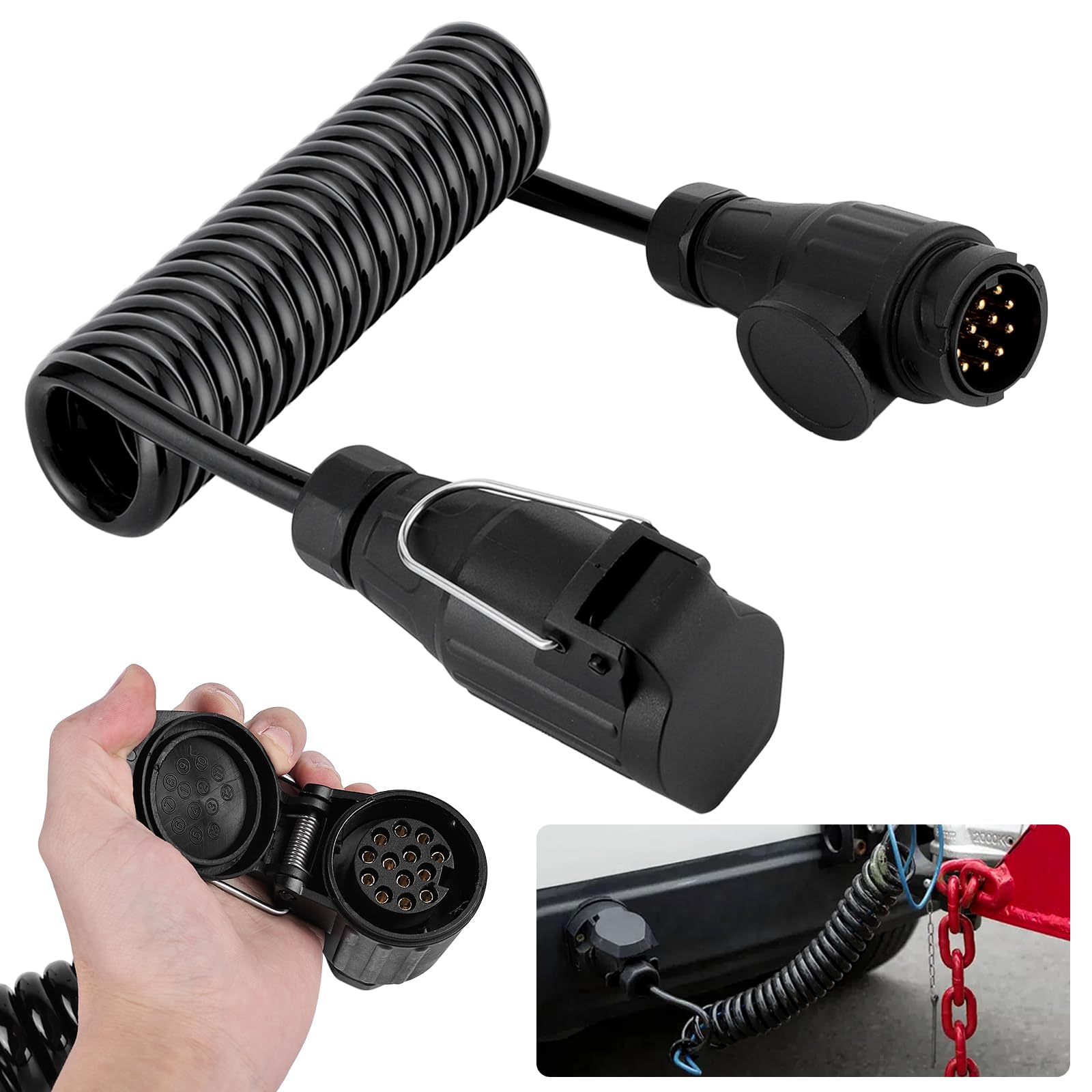 Mit diesem 2 Meter langen Verlängerungskabel hast du immer genug Spielraum für deinen Anhänger! Das 13-polige Kabel verbindet sicher dein Auto mit Wohnwagen, Fahrradträger oder anderen Anhängern. Aus flexiblem TPU-Material gefertigt, ist es super elastisch und zieht sich nach Gebrauch wieder zusammen. Das wasserdichte Gehäuse schützt vor Rost und Korrosion - da macht auch schlechtes Wetter nichts aus. Einfach einstecken und losfahren, kein Kabelschneiden nötig! Passt für die meisten europäischen Fahrzeuge mit 13-poligen Steckdosen. Ideal für Camping-Ausflüge, Transporte oder wenn mal wieder ein Anhänger umgezogen werden muss. Mit diesem Kabel bist du immer auf der sicheren Seite und hast alle Funktionen wie Blinker, Bremslicht und Rückfahrlicht garantiert verfügbar!
