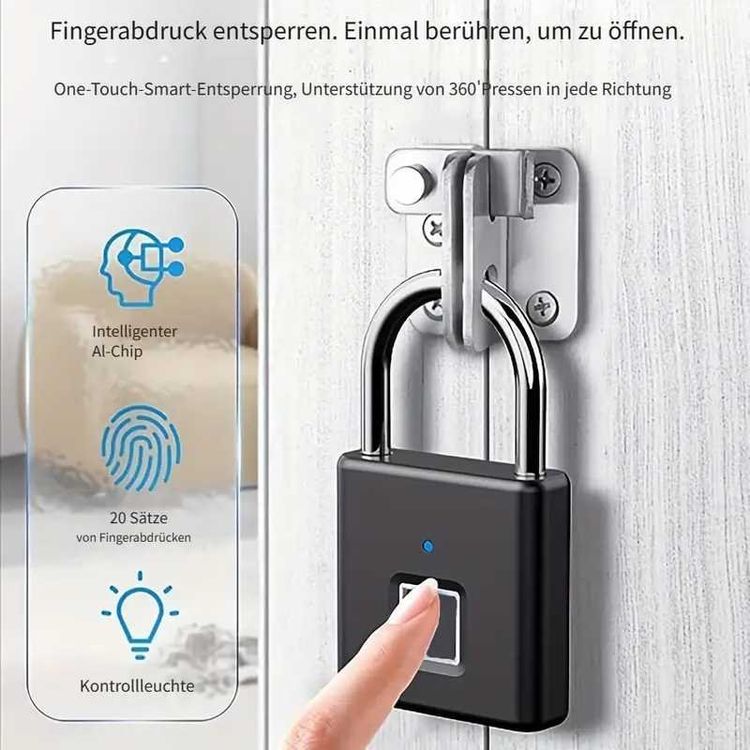 Wow, dieses Vorhängeschloss mit Fingerabdruck-Sensor ist der absolute Game-Changer für deine Sicherheit! Kein Gefummel mehr mit Schlüsseln - einfach Finger drauf und schon geht's auf. Der Halbleiter-Chip erkennt deinen Abdruck blitzschnell und sicher. Das Gehäuse aus robuster Zinklegierung hält echt was aus, und der Edelstahl-Bügel ist quasi unzerstörbar. Mit einer Akkuladung kommst du satte 1800 Öffnungen weit - und in nur 30 Minuten ist wieder voll geladen per USB. Wasserdicht ist es auch noch, also perfekt für draußen. Maße: 76x47 mm - handlich aber oho! Egal ob für dein Garagentor, Fahrrad oder Spind - dieses Schloss macht Schluss mit herkömmlichen Sicherheitslösungen!