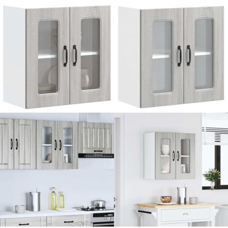 Stylisher Hängeschrank für deine Küche - in modernem Grau mit eleganter Glasfront! Maße: 60x31x60cm - passt auch in kleinere Küchen perfekt! \\n\\nAus hochwertigem Holzwerkstoff - super stabil und feuchtigkeitsresistent. Die Oberfläche ist glatt und super easy zu reinigen! \\n\\nMit 2 geräumigen Fächern hinter den Türen - ideal für Geschirr, Teller, Gläser oder Kochutensilien. Endlich Ordnung in der Küche! \\n\\nDie Türen schließen schön sauber ab - da bleibt alles staubfrei! Und der einfache, moderne Design passt zu fast jedem Einrichtungsstil. \\n\\nEinfach an der Wand zu montieren - allerdings sind Schrauben und Dübel nicht im Lieferumfang enthalten. Bitte passende für deine Wand besorgen! \\n\\nPerfekt um Küchenutensilien griffbereit zu haben aber trotzdem alles ordentlich verstaut. Macht die Küche gleich viel aufgeräumter! \\n\\nOb über der Arbeitsplatte oder in ner Ecke - dieser Hängeschrank gibt dir wertvollen Stauraum ohne viel Platz wegzunehmen!