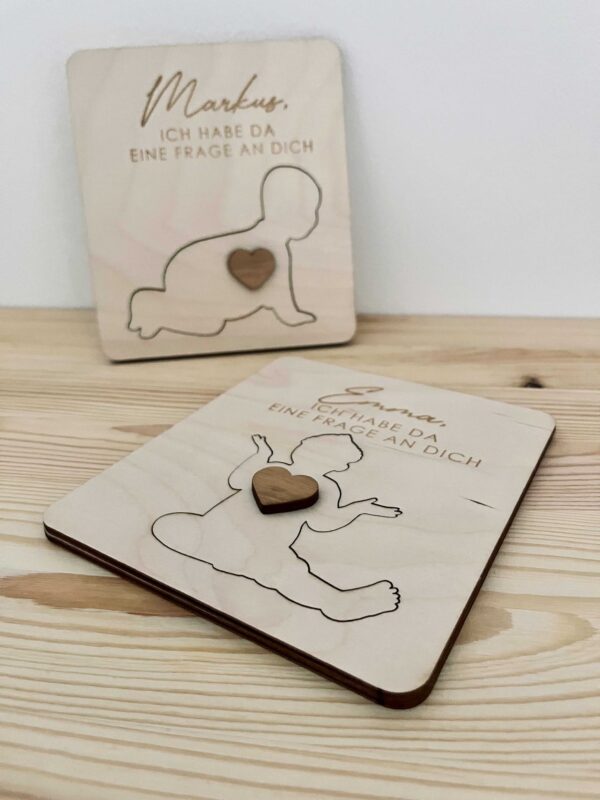 Die perfekte Art, die wichtige Frage zu stellen! Dieses edle Holzbuch macht die Patenonkel-Bitte zu einem unvergesslichen Moment. Aus massivem Holz gefertigt - jedes Stück ein Unikat mit natürlicher Maserung. Mit Platz für ein persönliches Foto über dem berührenden Spruch. Inklusive hochwertigem Umschlag und Siegel-Sticker für die perfekte Präsentation. Einfach das Lieblingsfoto einkleben, ins Holzbuch legen, versiegeln und überreichen! Nachhaltig und langlebig - ein Geschenk, das für immer in Erinnerung bleibt. Viel mehr als nur eine Frage - es ist ein Stück Familiengeschichte. Garantiert emotionale Momente!