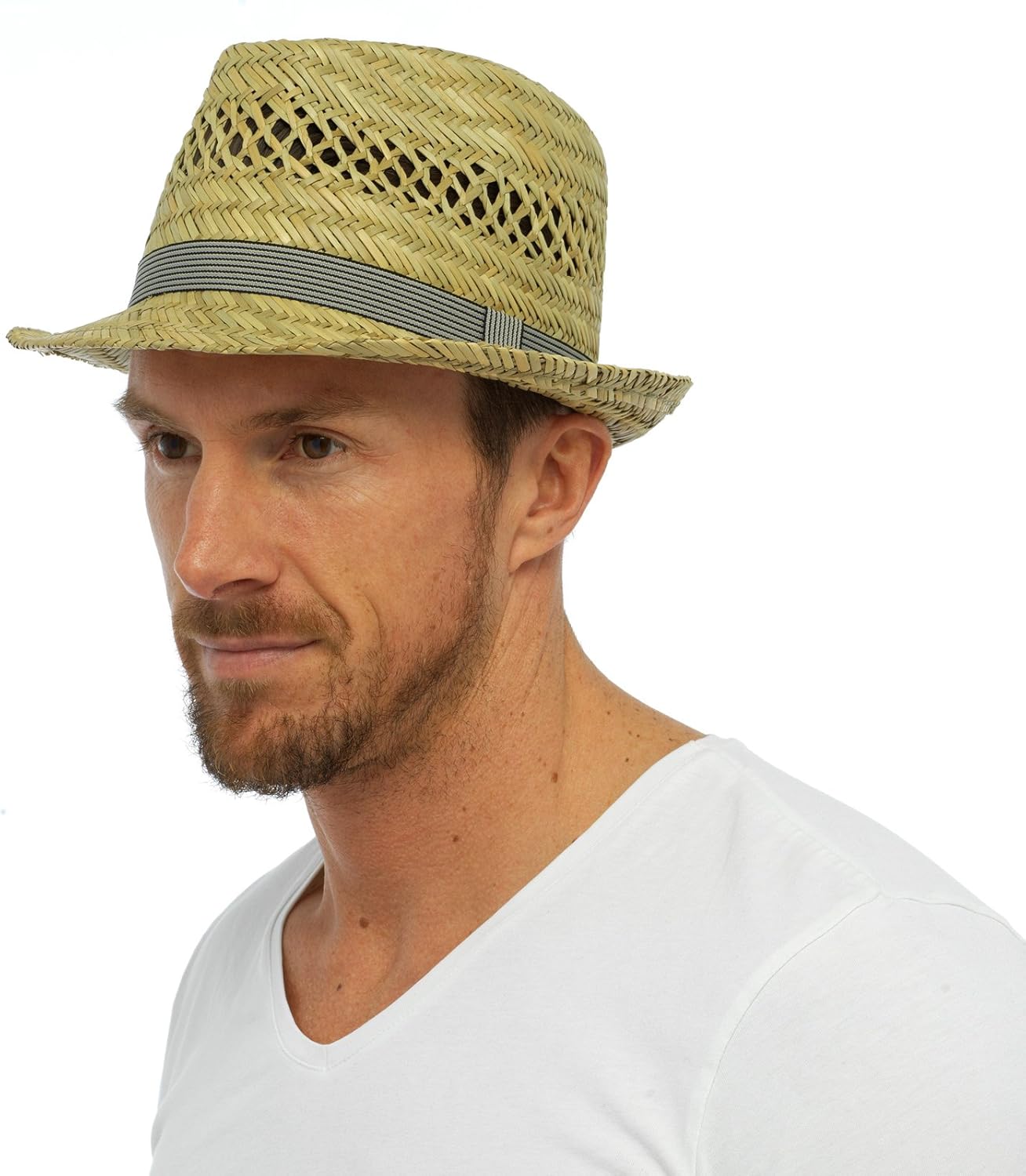 Puh, ist das heiß! Mit diesem stylischen Strohhut bleibst du cool an sonnigen Tagen. Der Panamahut ist super praktisch - einfach zusammenrollen und in der Tasche verstauen. Passt für Kopfumfänge von 56-58cm und ist aus angenehmer Polyester-Baumwoll-Mischung. Atmungsaktiv, leicht und weich auf der Haut. Perfekt für Strand, Stadt oder Festival! Wichtig: Nach dem Auspacken kurz in kaltem Wasser einweichen, mit Handtuch abtupfen und in Form bringen. Nicht auswringen! Trocknet dann in perfekter Form. Sieht einfach klasse aus und schützt zuverlässig vor der Sonne. Dein neuer Lieblingshut für den Sommer!