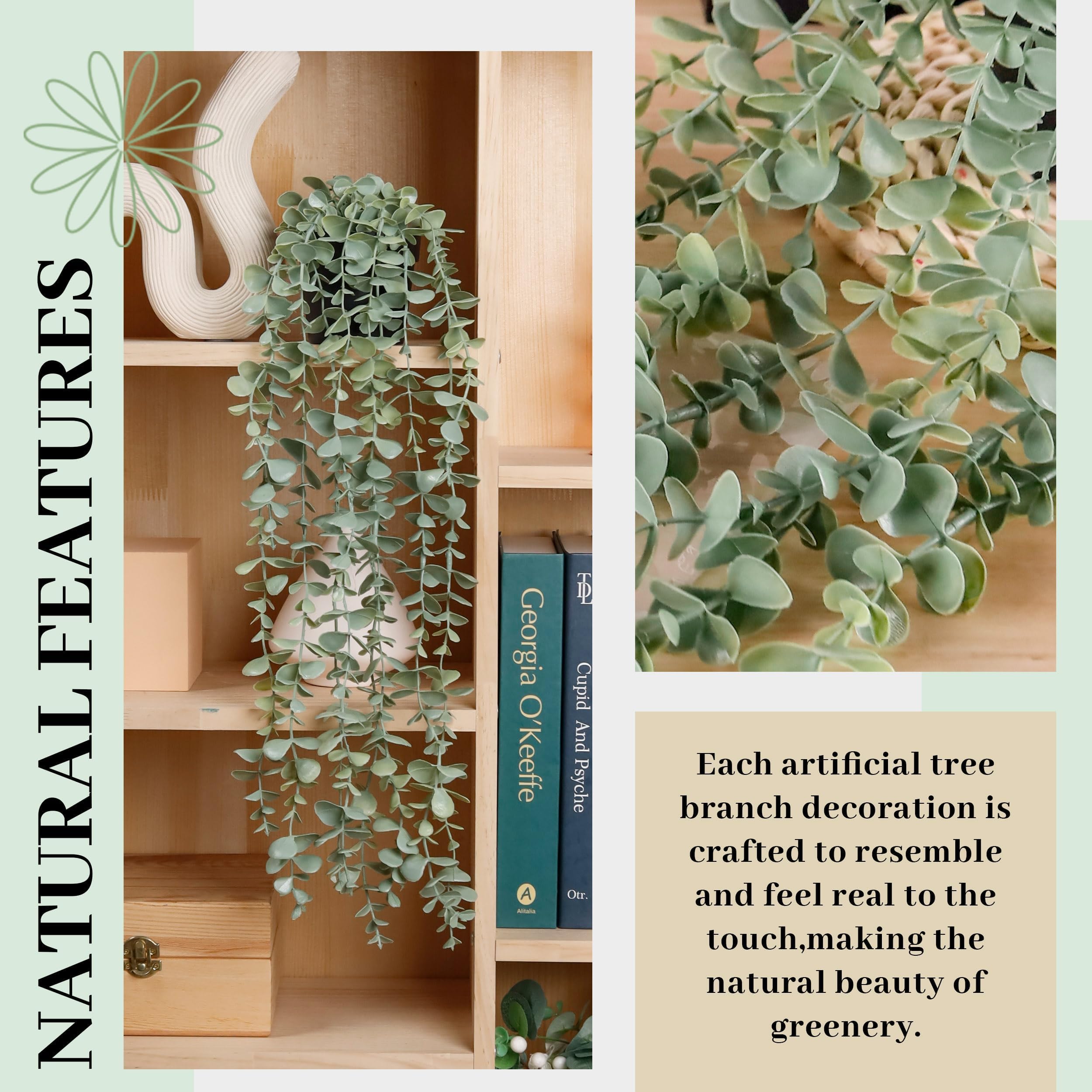 Boah, diese künstlichen Eukalyptus-Pflanzen sehen einfach mega echt aus! Perfekt für alle, die kein Talent fürs Gießen haben oder wenig Zeit. Die Ranken sind etwa 24,8 Zoll lang und kommen in einem schicken schwarzen Topf (3,5 Zoll). Macht sich super an Wänden, Regalen oder Fensterbänken - ob im Wohnzimmer, Bad oder auf dem Balkon. Das Material ist übrigens hochwertiges PVC, total wasserfest und langlebig. Die grüne Farbe sieht natürlich aus und verblasst nicht. Kein Gießen, kein Düngen, kein Schnippeln - einfach aufhängen und fertig! Perfekt für drinnen und draußen. Kombinier die Teile doch mit anderen Kunstpflanzen für deine persönliche Deko-Ecke. Wir sind überzeugt, dass du die Dinger lieben wirst - und falls nicht, melde dich einfach bei uns!