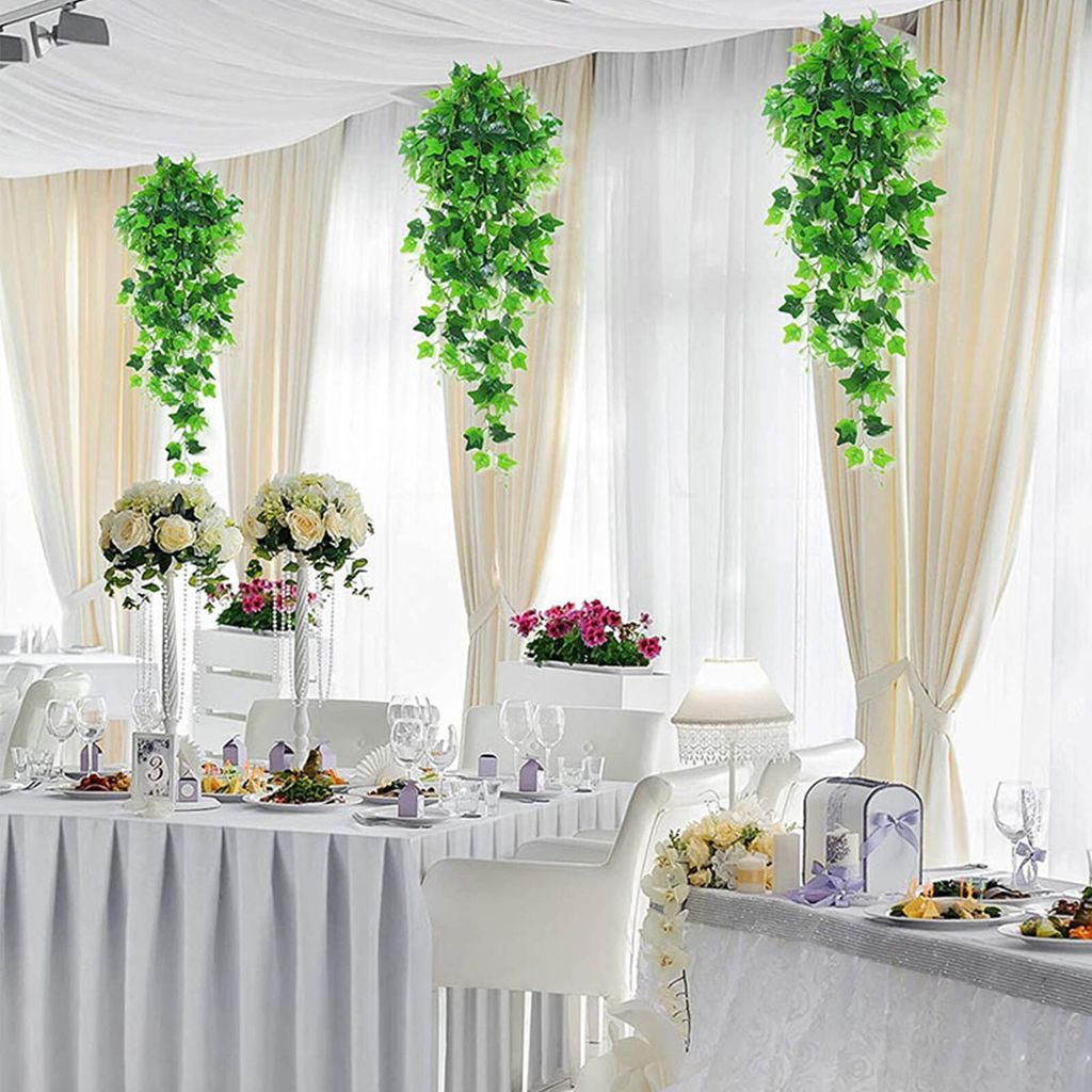 Grün das ganze Jahr - ohne Gießen! Diese 6 künstlichen Efeuranken mit insgesamt 12m Länge und 81 Blättern bringen Natur in dein Zuhause. Aus hochwertigem Material das nicht verblasst oder abfällt.