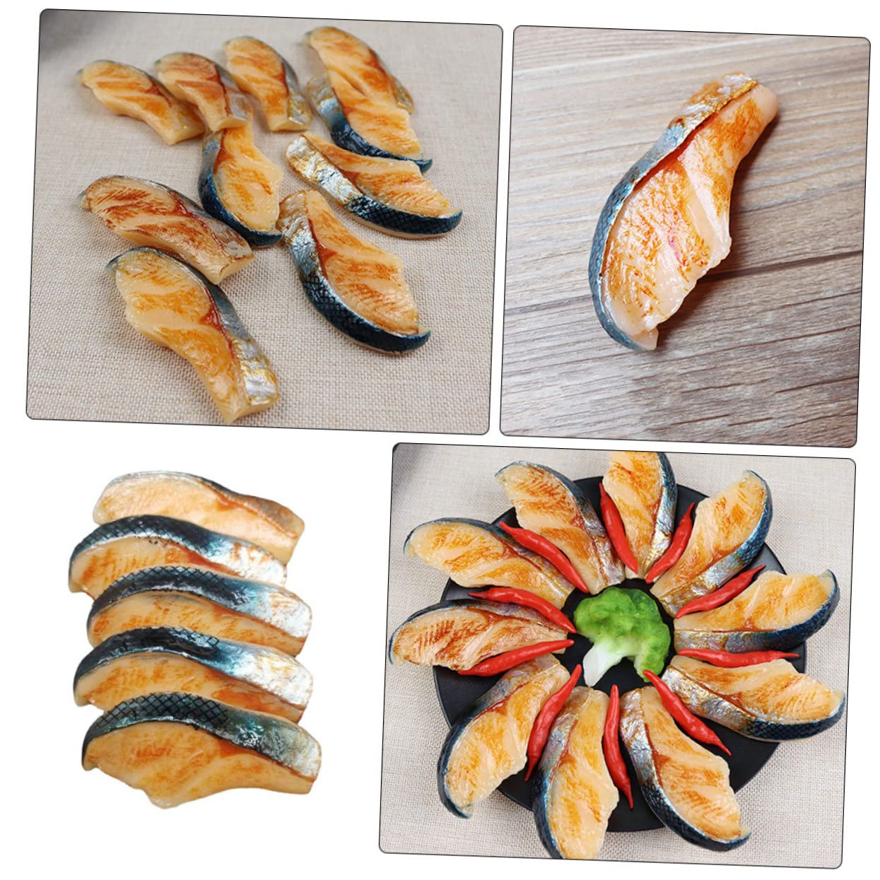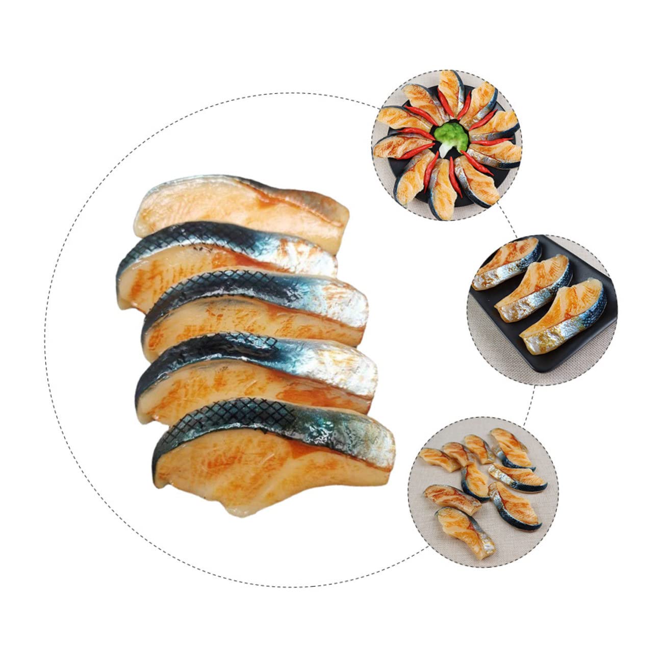 Sieht aus wie echt - ist aber nur Deko! Diese 5 Fischfleisch-Attrappen aus PVC sind so realistisch, dass man fast reinbeißen möchte. Perfekt für deine Küchendeko oder Fotoshootings!