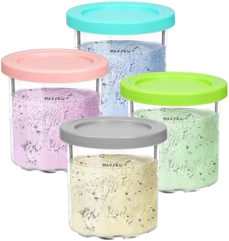Mehr Eiscreme-Variationen mit diesen bunten Behältern! 4 Stück in Grau, Rosa, Blau und Grün - da behält man den Überblick, welches Eis drin ist. Perfekt für Ihre Ninja Creami NC300EU. Jeder Behälter fasst 473ml und ist spülmaschinenfest - super praktisch! Der Silikondeckel hält dicht, nichts läuft aus. Einfach befüllen, einfrieren und cremiges Eis genießen. Bitte nicht über die Fülllinie gehen und heiße Soßen vermeiden. Macht die Eismaschine noch vielseitiger - ob Sorbet, Milchreis oder Protein-Eis. Eis-Party mit Freunden? Mit diesem Set kein Problem! Ein Muss für alle Creami-Fans!