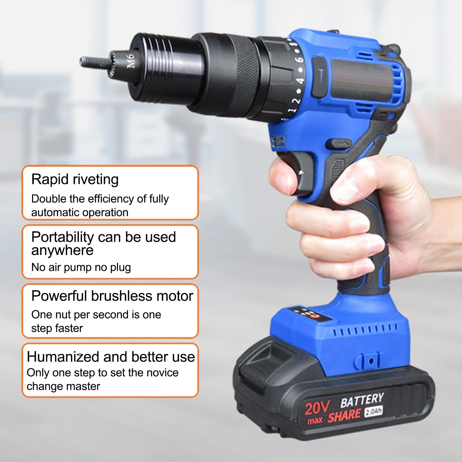 Schluss mit anstrengendem manuellen Nieten! Diese elektrische Akku-Nietzange macht dir die Arbeit super einfach. Kompatibel mit Makita 18V Akkus (ohne Akku im Lieferumfang), arbeitet sie komplett kabellos und überall wo du sie brauchst. Der bürstenlose Motor ist nicht nur effizienter und länger haltbar, sondern auch viel leiser als herkömmliche Modelle. Verarbeitet Blindnieten von 2.4mm, 3.2mm, 4.0mm bis 4.8mm - perfekt für Automotive, Bootsbau, Möbelmontage oder Baustellen. Die Ein-Tasten-Bedienung macht das Nieten zum Kinderspiel: Schalter antippen und die Zange erledigt Nieten, Brechen und Rückzug automatisch! Der ergonomische Soft-Grip-Griff liegt perfekt in der Hand und reduziert Ermüdung. Mit praktischem Vorwärts-/Rückwärtsschalter für alle Arbeitssituationen. Die Selbsthemmungsfunktion am Kopf ermöglicht schnellen Dornwechsel ohne Werkzeug. Professionelles Werkzeug das sich lohnt!