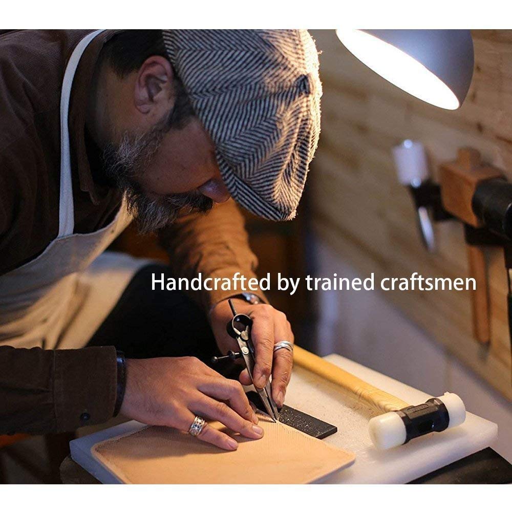 Dieses handgemachte Ledertagebuch wird dein treuer Begleiter für alle Abenteuer! Aus weichem Vollnarbenleder gefertigt, entwickelt es mit der Zeit eine wunderschöne Patina und wird so zu einem ganz persönlichen Unikat. Im praktischen Passformat (14x11 cm) passt es in jede Jackentasche oder Handtasche. Besonders clever: Die elastische Bindung hält drei verschiedene nachfüllbare Einlagen - liniert, kariert und blanko - plus zwei praktische Kartontaschen für Fotos, Karten oder andere Schätze. Das cremefarbene Papier ist extra dick, damit die Tinte nicht durchdrückt. Ob Reiseerinnerungen, Gedanken oder Skizzen - dieses Tagebuch bewahrt deine wertvollsten Momente stilvoll auf. Ein zeitloses Stück Handwerkskunst, das Generationen überdauert!