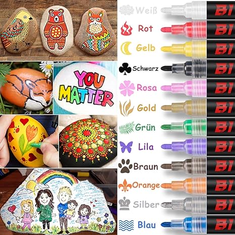 Wow, mit diesen 36 Acrylstiften kannst du sofort loslegen! Die ultrafeine 0,7mm-Spitze ist perfekt für präzise Details auf Steinen, Glas oder Holz. Egal ob du Anfänger oder Profi bist - die Stifte liegen super in der Hand und die Farbe deckt richtig gut. Das Beste: Die Tinte ist wasserfest und trocknet mega schnell, also kein Verschmieren mehr! Total praktisch für drinnen und draußen. Und keine Sorge - die Stifte sind absolut ungiftig und kindersicher. Einfach schütteln, leicht drücken und schon fließt die Farbe gleichmäßig. Perfekt für deine Bastelprojekte, tolle Geschenke oder Deko-Ideen. Übrigens: Die lebendigen Farben machen jedes Projekt zum Eyecatcher! Ob kräftige Töne oder zarte Pastellfarben - hier findest du alles. Super als Mitbringsel zu Geburtstagen, Weihnachten oder einfach so. Damit werden deine Steinmalereien, DIY-Projekte und personalisierten Kunstwerke zum absoluten Hingucker!