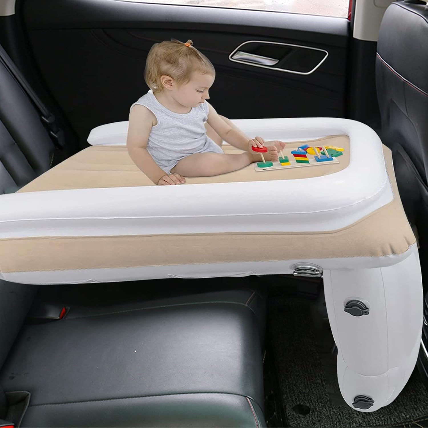 Lange Autofahrten mit Kindern? Kein Problem mehr! Diese aufblasbare Auto-Luftmatratze verwandelt den Rücksitz in ein gemütliches Bett. Mit verstellbarer Länge passt sie sich jedem Fahrzeug an - ob Auto, Flugzeug oder Zug. Der mitgelieferte Sicherheitsgurt hält dein Kind sicher an Ort und Stelle. Aus weichem, plüschigem Flockstoff und robustem PVC gefertigt, ist sie nicht nur superbequem, sondern auch langlebig. Das robuste Ventil ermöglicht schnelles Auf- und Abblasen mit minimalem Geräusch. Maße: ca. 82x80x60 cm - perfekt für Kleinkinder. Das zweistufige Aufblas-System ist genial: Das untere Kissen kann separat entlüftet werden, sodass du die Matratze auch auf dem Bett oder Sofa nutzen kannst. Im Lieferumfang ist alles dabei: Matratze, manuelle Pumpe, Befestigungsband und Aufbewahrungstasche. So wird jede Reise entspannter - für die Kinder und für dich! Endlich keine herunterfallenden Spielzeuge oder Essen mehr - alles bleibt sauber und ordentlich.