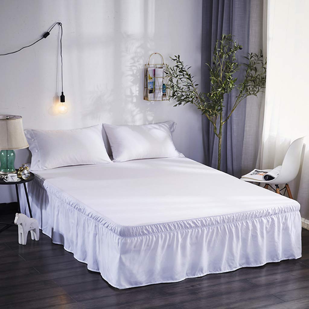 Endlich kein Kampf mehr mit der Matratze! Dieser elastische Bettrock ist so einfach anzuziehen - einfach ums Bett wickeln und fertig! Kein lästiges Matratzen-Anheben mehr. In schönem Weiß mit hübschen Rüschen verleiht er deinem Schlafzimmer sofort ein gemütliches, aufgeräumtes Aussehen. Mit 38cm Länge verdeckt er perfekt deine Boxspring oder den Bettrahmen und versteckt alles, was darunter lagert. Aus weichem Polyester gefertigt, der nicht ausbleicht und maschinenwaschbar ist - super praktisch! Das verstellbare Gummiband sorgt für perfekten Halt und passt sich jeder Matratze an. In nur 2-3 Minuten ist der Bettrock angebracht - selbst eine Person schafft das problemlos! Perfekt für die meisten Betttypen - nur nicht für Betten mit Trittbrett oder Pfosten. Dein Schlafzimmer sieht sofort eleganter und gepflegter aus. Und wenn dir doch mal was nicht passt: 100% Zufriedenheitsgarantie! Einfach bestellen, umwickeln und sich über das neue, frische Aussehen freuen!