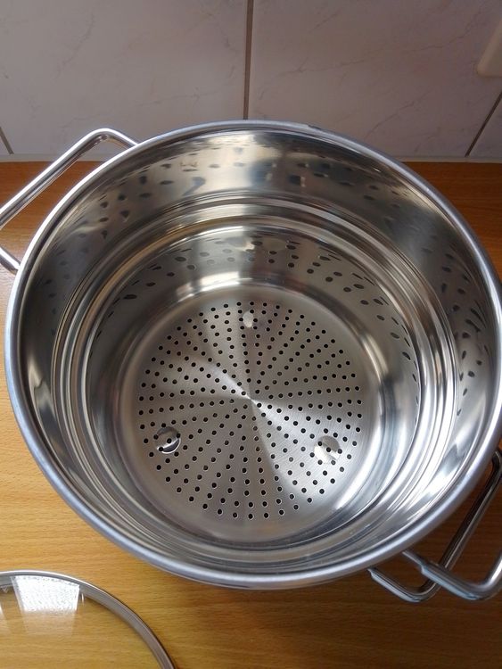 Gesund kochen war noch nie so einfach! Der Navaris Gemüsedämpfer aus Edelstahl verwandelt jeden Topf in einen professionellen Dampfgarer. Das praktische 2-stufige Design gibt dir extra Platz - unten die Kartoffeln, oben das zarte Gemüse. So garen alle Zutaten perfekt, ohne dass Aromen vermischt werden. Vitamine und Nährstoffe bleiben optimal erhalten, was ihn besonders für gesunde Babynahrung ideal macht. Aus robustem Edelstahl gefertigt, ist der Dämpfer spülmaschinenfest und super leicht zu reinigen. Mit 26,5 cm Durchmesser passt er in die meisten Standardtöpfe. Einfach Wasser in den Topf, Dämpfer reinlegen, Deckel drauf und schon geht's los! Perfekt für alle, die Wert auf gesunde Ernährung legen - ob für Singles, Familien oder Gesundheitsbewusste. Mach dir das Dampfgaren zur Gewohnheit und entdecke, wie lecker gesundes Essen schmecken kann!
