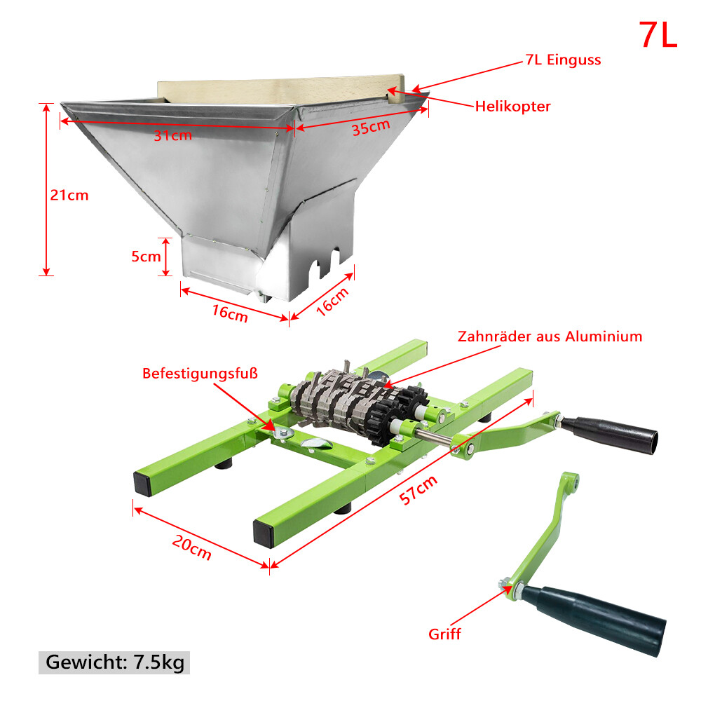 Macht dir das Zerkleinern von Obst für Wein, Säfte oder Soßen immer so viel Mühe? Dann wird diese elektrische Obstmühle dein neuer bester Freund! Mit 4 Litern Fassungsvermögen und einem starken 60W-Motor aus reinem Kupfer zerkleinert sie Äpfel, Beeren und anderes Obst im Nu. Alles aus robustem Edelstahl, also super hygienisch und langlebig. Einfach einschalten, das Obst in den großen Einfülltrichter geben und sich über feinste Maische freuen. Perfekt für alle, die ihren eigenen Wein herstellen, Säfte pressen oder einfach nur gerne mit Obst arbeiten. Die Maschine hat sogar eine Kühlfunktion, damit der Motor nicht überhitzt. Also, worauf wartest du noch? Mach dir die Arbeit leichter und hol dir diese praktische Obstmühle!