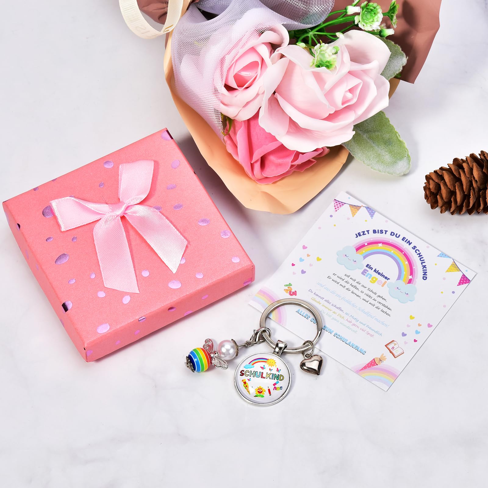 Einschulung Geschenkset Mädchen 2025 - Schutzengel Schlüsselanhänger & Mutter-Tochter Armband