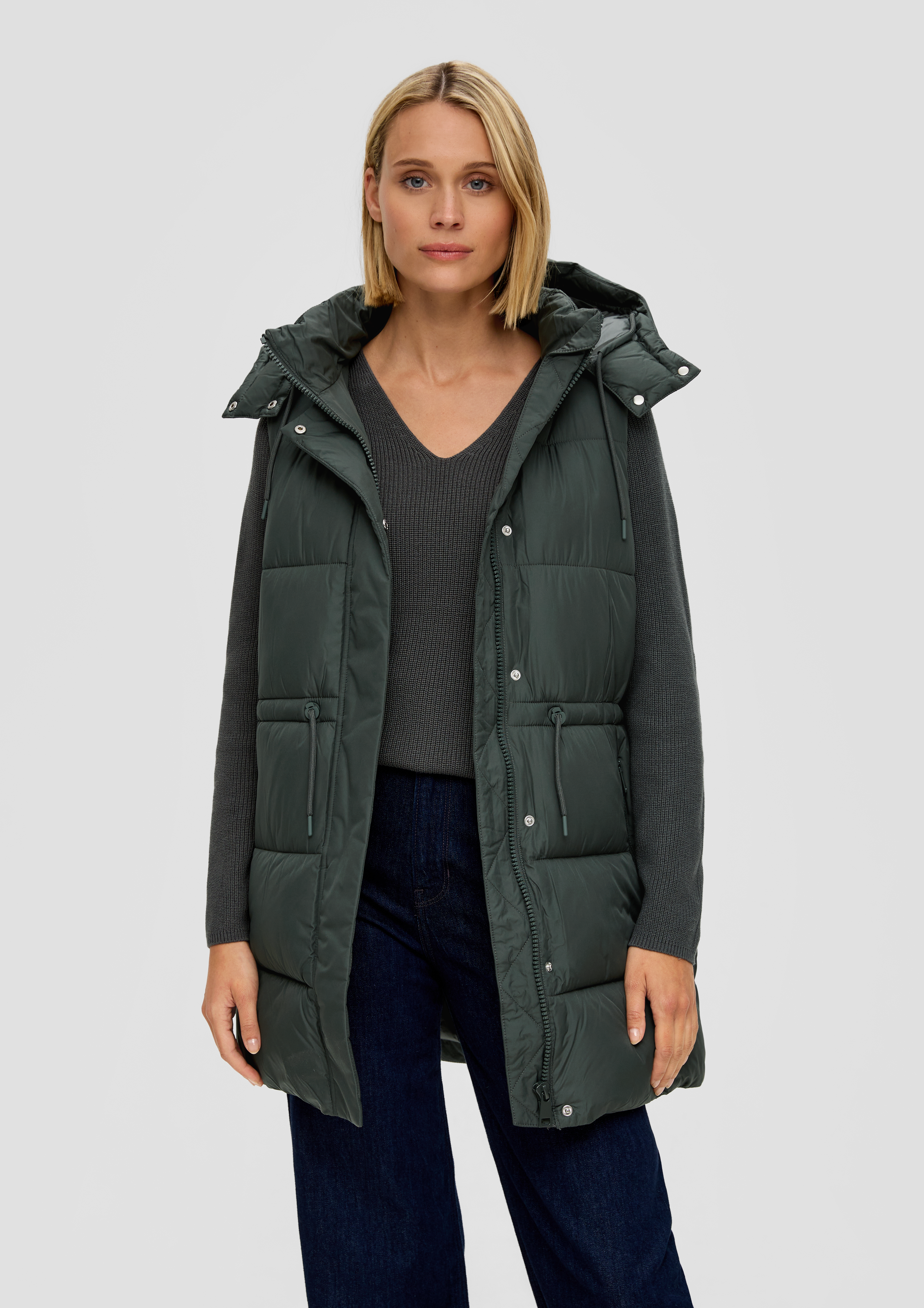 Mädels, diese wendbare Steppweste von s.Oliver ist der absolute Hit für die Übergangszeit! Stell dir vor: Du hast praktisch zwei Westen in einer - einfach umdrehen und schon hast du einen komplett neuen Look. Perfekt für spontane Stadtbummel, gemütliche Spaziergänge oder den Trip in die Berge. Mit fixierter Kapuze und praktischen Taschen bist du für jedes Wetter gerüstet. Die Wattierung wärmt angenehm, ohne dass du dich aufgebläht fühlst. Regular Fit heißt: Sitzt genau richtig, nicht zu eng, nicht zu weit. Ob über Pullover, Bluse oder T-Shirt - diese Weste passt zu allem! Das Futter aus Webware fühlt sich super weich an und das Fell-Innenfutter gibt dir extra Kuschelfaktor an kühlen Tagen. Praktischer geht's kaum - einfach anziehen und los geht's! Perfekt für alle, die flexibel und stylisch unterwegs sein wollen.