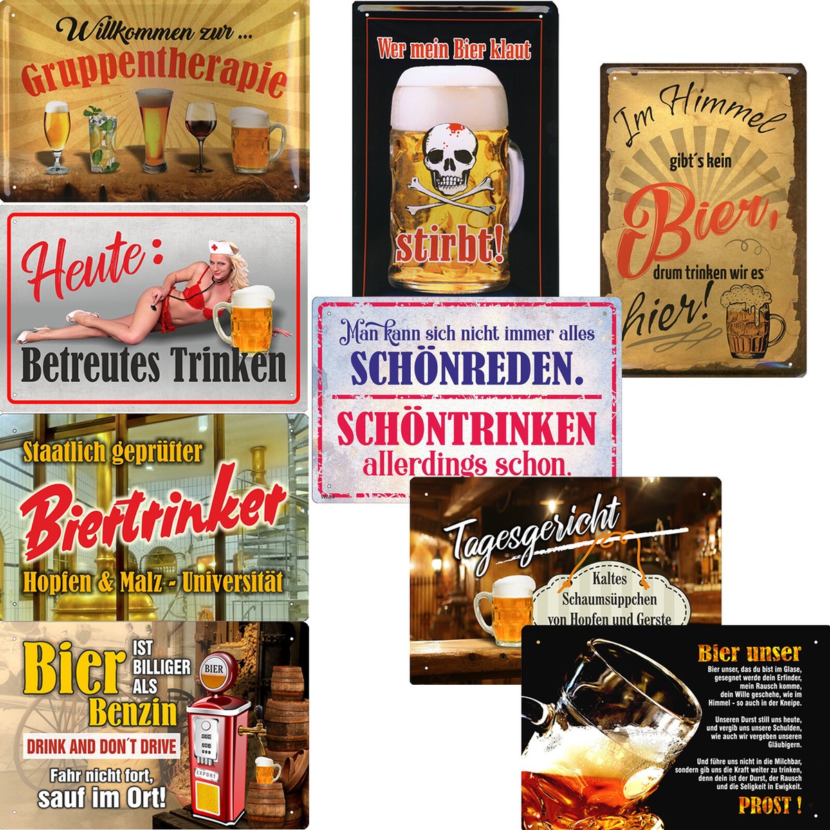 Suchst du noch das perfekte Accessoire für deine Kneipe, deinen Partykeller oder die heimische Bar? Dieses Blechschild mit dem lustigen Spruch 'Betreutes Trinken' bringt sofort Stimmung rein! Mit 20x30cm (etwa DIN A4) ist es gut sichtbar, aber nicht zu aufdringlich. Aus stabilem Stahlblech gefertigt, mit praktischen Lochbohrungen in den Ecken für einfaches Aufhängen. Ob an der Tür, an der Wand oder hinter der Theke - dieses Schild sorgt für Schmunzler und lockere Atmosphäre. Ein super Geschenk für Bier-Liebhaber, zum Geburtstag oder einfach als Deko für die eigene Werkstatt. Robust, witzig und absolut kultig - so wird jeder Raum gleich viel gemütlicher!