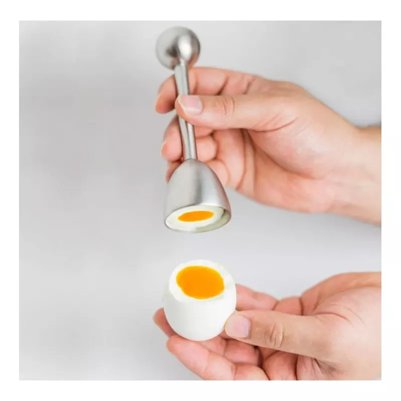 Schluss mit verkratzten Fingern und zerbröselten Eiern! Dieser Eierköpfer aus Edelstahl macht das Öffnen von Eiern zum Kinderspiel. Einfach den Knopf hochziehen und loslassen - schon ist die Eierschale perfekt gekappt, ohne dass kleine Splitter ins Ei fallen. Das Set enthält alles, was du brauchst: den Eierköpfer, 2 Edelstahl-Becher und 2 Löffel. Alles aus lebensmittelechtem Edelstahl und spülmaschinenfest. Funktioniert mit weich und hart gekochten Eiern, sogar mit rohen Eiern für besondere Rezepte. Perfekt fürs Frühstück, zum Backen oder für die Gourmet-Küche. Die becher und Löffel eignen sich auch super für Desserts oder Dips. Ein praktisches Küchenutensil, das sich schnell bezahlt macht - und ein tolles Geschenk für Hobbyköche!