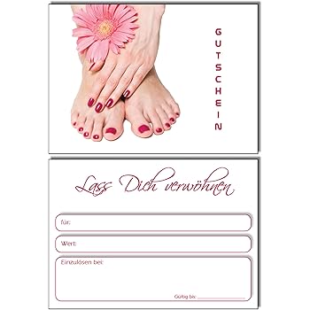 Suchst du nach dem perfekten Geschenk? Diese Fußpflege-Gutscheinkarten sind genau das Richtige! 50 Stück im Pack - hochwertiger Chromolux-Karton mit 280g/m², also richtig stabil. Das Design ist professionell und vermittelt sofort Wellness-Feeling. Auf der Rückseite ist Platz für Dienstleistungsbeschreibung, Datum, Unterschrift und Stempel. Perfekt für Fußpflege-Praxen, Kosmetikstudios oder Wellness-Einrichtungen. Du kannst entweder einen Festbetrag eintragen oder eine bestimmte Behandlung. Mit interner Nummerierung gegen Fälschungen. Made in Germany - wird hier vor Ort designed und produziert. Tipp: Leg noch ne kleine Aufmerksamkeit bei, wie ne Creme-Probe oder Süßigkeit - das kommt immer gut an! So gewinnst du neue Kunden und steigerst deinen Umsatz. Einfach bestellen, ausfüllen und verkaufen - deine Kunden werden's lieben!