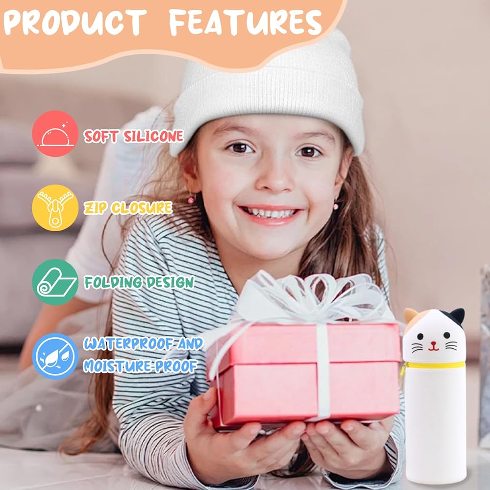 Oh wie süß, diese Mexgcom Silikontasche! Im niedlichen Katzen-Design - perfekt für Schule, Büro oder unterwegs. Das Besondere: Es ist ein 2-in-1 Teil! Einmal als Federmäppchen mit Reißverschluss, wo bis zu 15 Stifte sicher verstaut sind. Und dann als Tischstifthalter - einfach den Boden einklappen und schon stehen deine Stifte griffbereit. Aus weichem, lebensmittelechtem Silikon - total sicher und umweltfreundlich. Wasserdicht und feuchtigkeitsbeständig - also kein Problem wenn mal was daneben geht. Maße: 24,5x16x7cm, nur 120g leicht. Passt in jede Schultasche oder Rucksack. Super Geschenk für Lehrer, Freunde oder Klassenkameraden. Einfach praktisch und mega niedlich - mehr braucht man nicht!