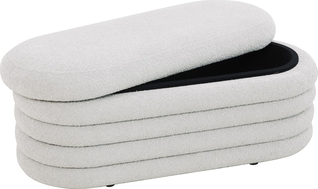 Platzprobleme? Diese stylische Polsterbank von Riess Ambiente löst sie elegant! Mit 110 cm Breite, 45 cm Höhe und 43 cm Tiefe passt sie perfekt in Flur, Schlafzimmer oder Wohnbereich. Der weiße Bouclé-Bezug fühlt sich nicht nur super weich an, sondern sieht auch total edel aus. Das schwarze Metallgestell gibt sicheren Halt und bildet einen modernen Kontrast. Aber das Beste kommt noch: Unter der Sitzfläche verbirgt sich ein praktischer Stauraum von 102x37x25 cm! Perfekt für Decken, Kissen oder alles, was nicht immer rumliegen soll. Die Schaumstoffpolsterung macht das Sitzen richtig gemütlich - ob zum Schuhe anziehen im Flur oder als zusätzliche Sitzgelegenheit im Wohnzimmer. Die abgerundeten Ecken sehen nicht nur gut aus, sondern sind auch sicher für Kinder. Ein Möbelstück, das nicht nur gut aussieht, sondern auch echt praktisch ist. Einfach aufstellen und über den extra Stauraum freuen!