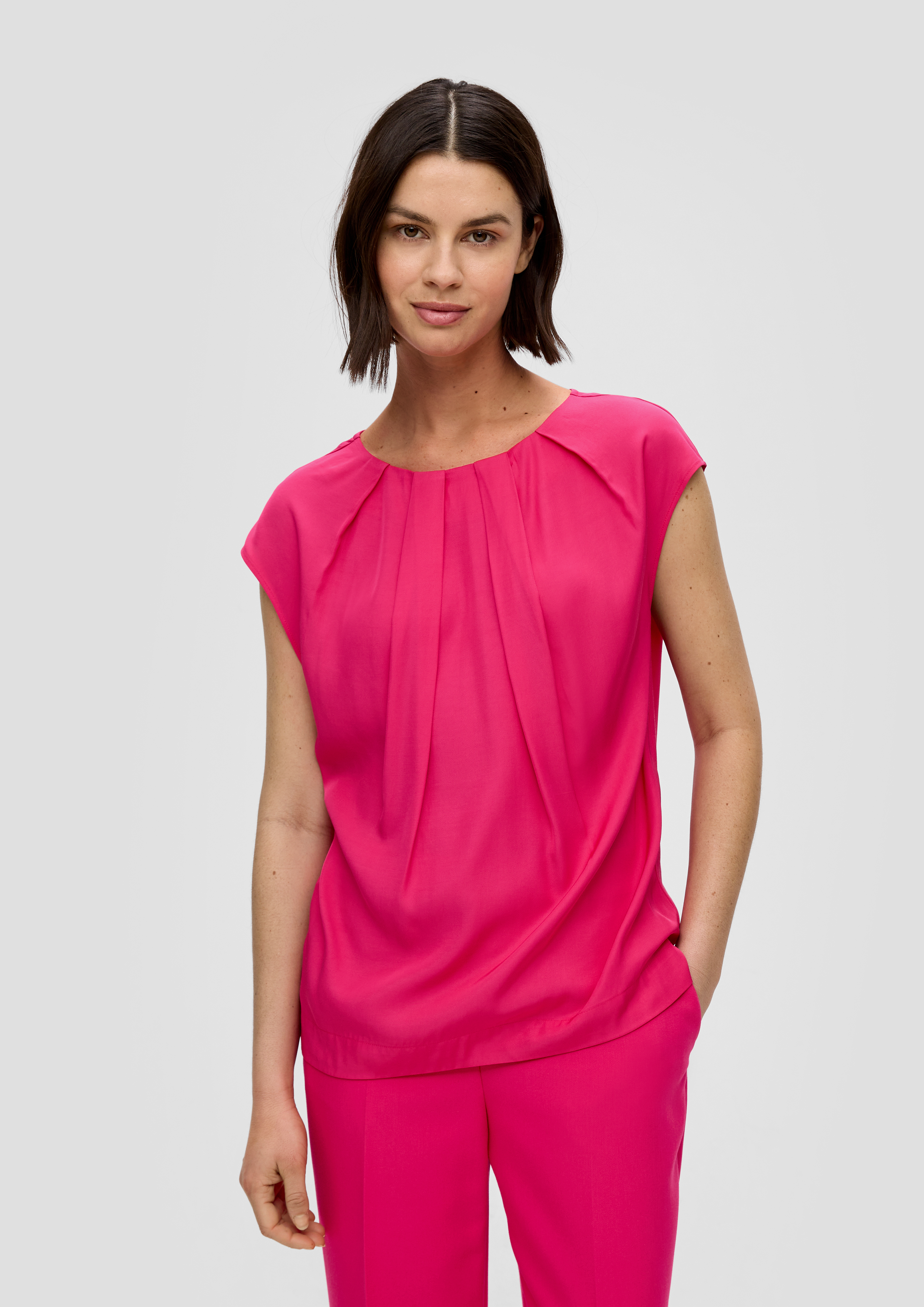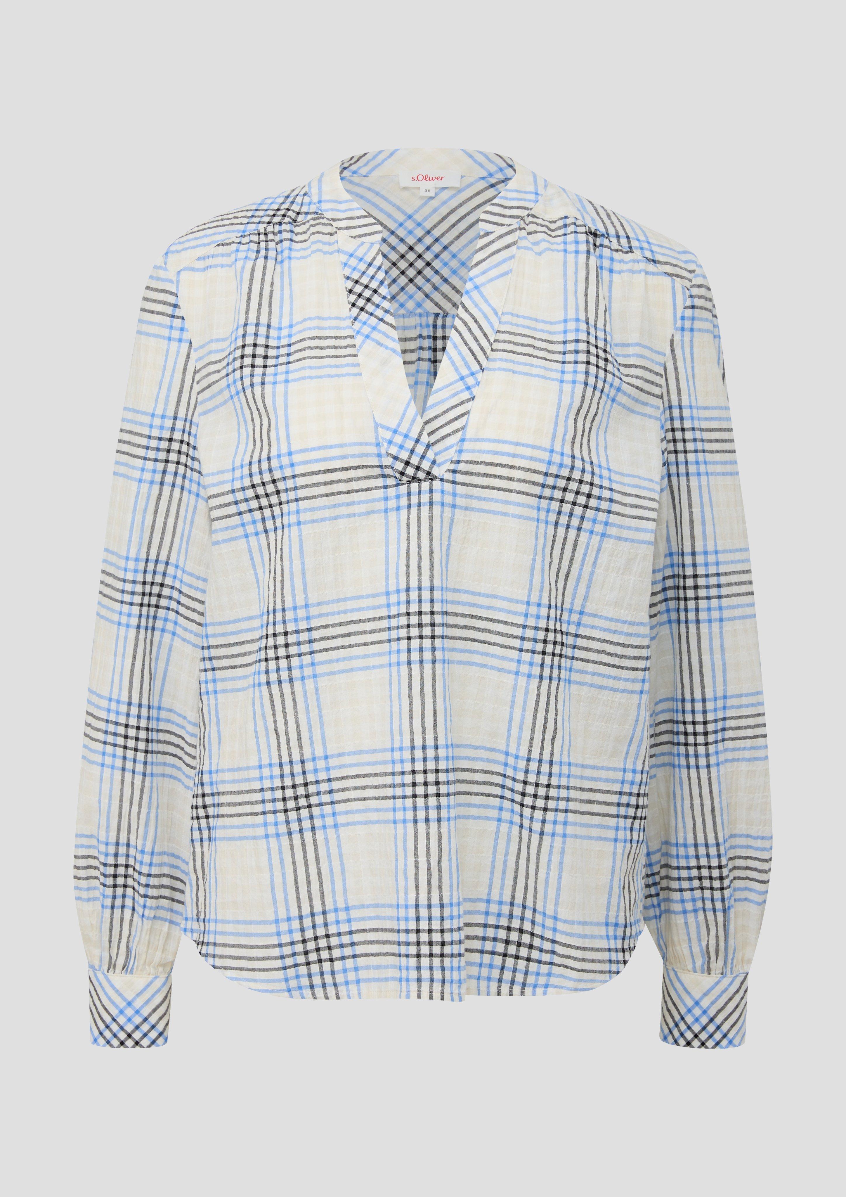 Einfach unwiderstehlich, diese karierte Bluse von s.Oliver! Sie liegt super angenehm am Körper und die raffinierten Falten am Rücken verleihen ihr eine richtig feminine Note. Besonders praktisch: Die elastischen Ärmelbündchen sorgen für perfekten Sitz, und der kombinierte Rundhals- und V-Ausschnitt macht sie zum echten Allrounder. Ob zur Jeans, zum Rock oder zum eleganten Hosenanzug - diese Bluse passt immer! Die reguläre Passform sitzt bei den meisten Figurtypen optimal, und der verlängerte Rückensaum gibt zusätzlichen Komfort. Aus fließendem Stoff gefertigt, der sich wunderbar tragen lässt. Perfekt fürs Büro, einen Stadtbummel oder einen gemütlichen Abend mit Freunden. Ein Kleidungsstück, das du immer wieder anziehen wirst - bequem, stylisch und vielseitig kombinierbar!