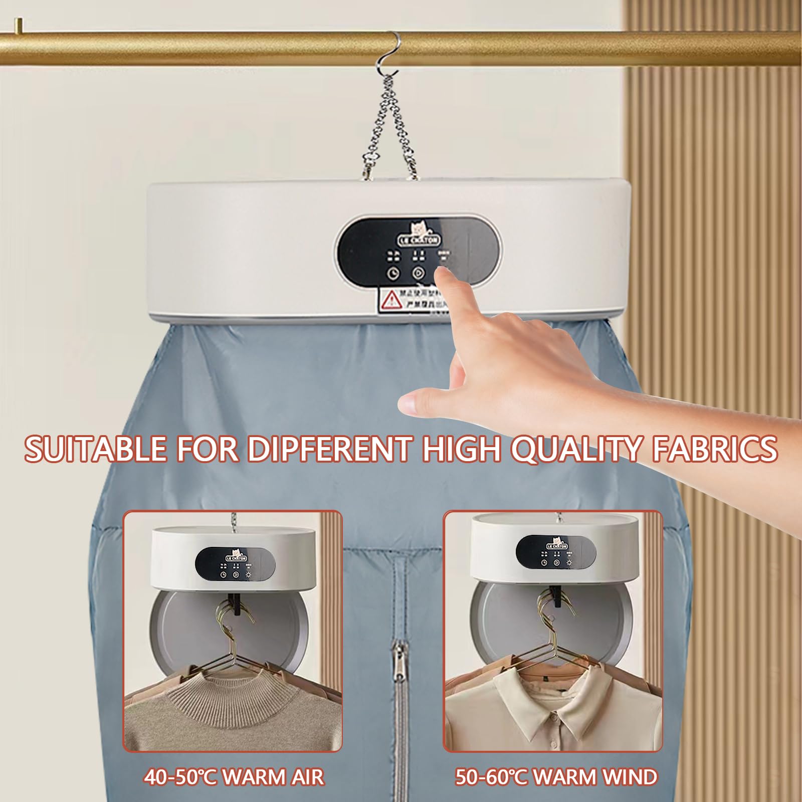 Nie wieder nasse Wäsche in der Wohnung! Dieser super praktische Trockner passt in jede noch so kleine Ecke und trocknet deine Wäsche in nur 20 Minuten. Mit 1200W Leistung und 3D-Luftzirkulation für schonendes Trocknen ohne die Kleidung zu beschädigen. Drei Temperaturstufen: 40-50°C für empfindliche Stoffe wie Seide und Wolle, 50-60°C für Alltagskleidung. Der integrierte Timer lässt sich bis zu 2 Stunden einstellen - einfach einstellen und die Arbeit erledigen lassen. Besonders clever: Die UV-Desinfektion entfernt 99% der Bakterien - perfekt für Babykleidung! Nur 45dB leise - du kannst ihn sogar nachts laufen lassen. Bis zu 15kg Fassungsvermögen, also 9-15 Kleidungsstücke auf einmal. Ideal für Studentenwohnheime, Wohnwagen oder Camping. Mit 100-240V Spannung weltweit einsetzbar. Dein Retter in der Regenzeit!