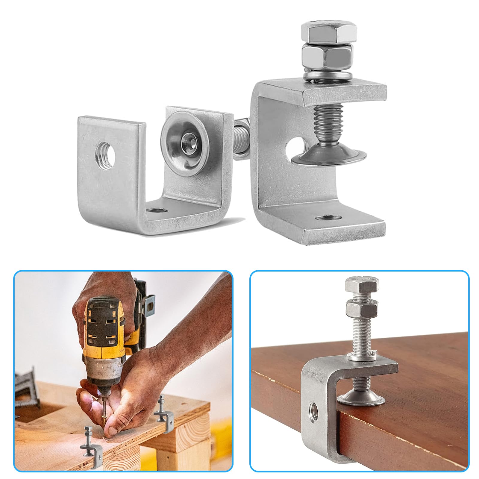 Für stabile Halterung: Dieses 4-teilige Set Edelstahl C-Zwingen von LDDHYH ist dein vielseitiger Helfer in Werkstatt und Haushalt! Die Zwingen sind aus hochwertigem, fein poliertem Aluminium und Kohlenstoffstahl gefertigt – das macht sie korrosionsbeständig, extrem robust und langlebig. Die Oberfläche ist griffig und ohne scharfe Grate. Mit einem Klemmbereich von 0-25 mm und einer Kieferöffnung von 30 mm eignen sie sich perfekt für verschiedene Aufgaben. Die verstellbaren Befestigungsschrauben lassen sich flexibel an deine Bedürfnisse anpassen, die Spannkraft ist stark und die Handhabung denkbar einfach. Die abnehmbare Stellschraube macht die Zwingen besonders vielseitig einsetzbar. Einfach durch Drehen der Schraube an jedem Tisch oder Holzstab befestigen – schon hält alles bombenfest. Ideal für Holzarbeiten, Schweißen, Tischlerei, Montagearbeiten oder das Befestigen von Unterböden an Tischsägen. Im Lieferumfang sind 4 C-Zwingen, 4 M8 Aufhängebügel und 4 M8 Haken enthalten. So hast du immer die richtige Zwinge zur Hand!