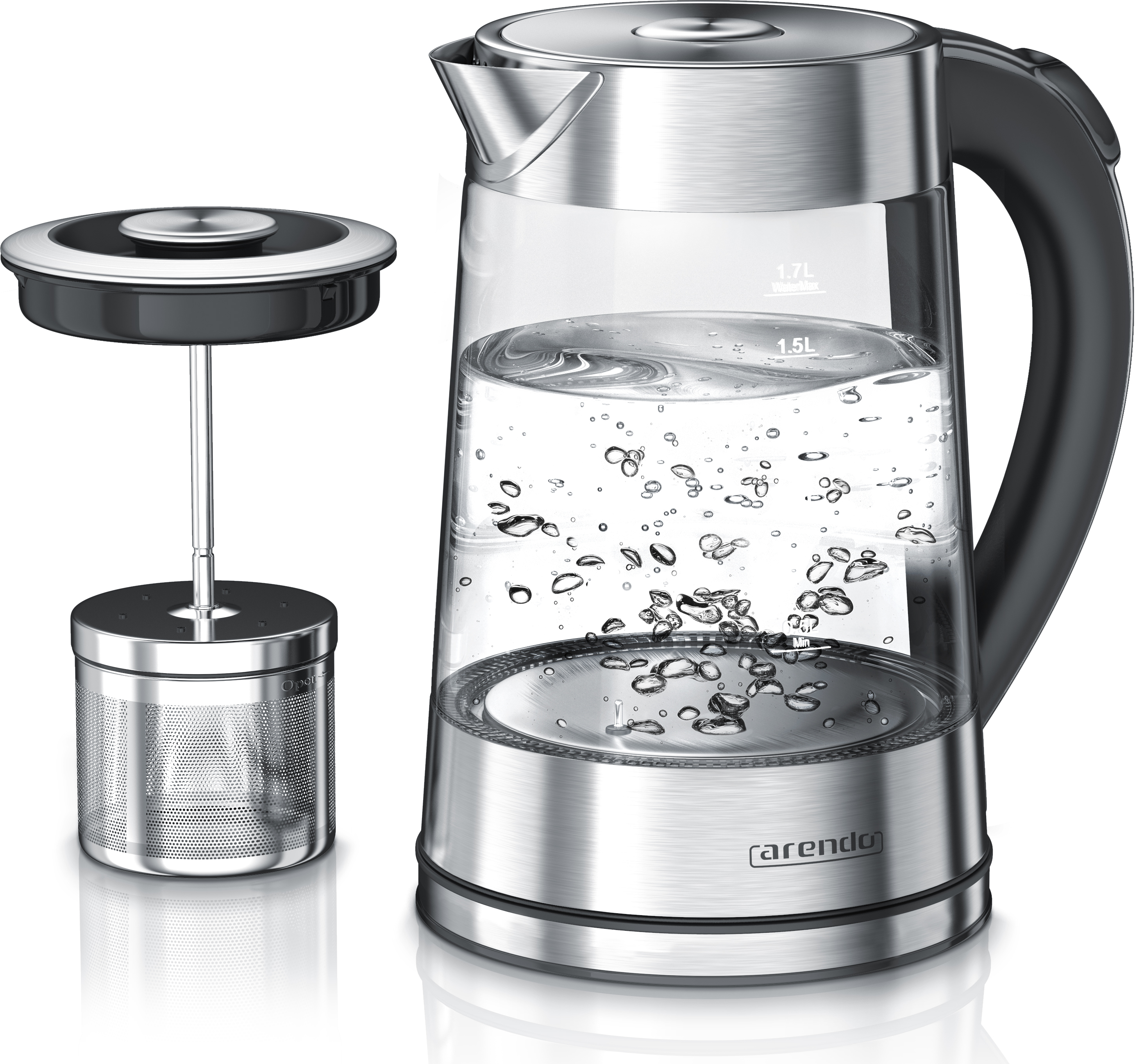 Wow, dieser Arendo Wasserkocher ist ja mal richtig vielseitig! Kombiniert nen 1,8L Wasserkocher mit ner 0,8L Teekanne aus hitzebeständigem Borosilikatglas. Mit 2200W Power und 5 Temperaturen von 40°C bis 100°C - perfekt für jeden Teetyp! Das coole LED-Farbring zeigt dir die Temperatur an - grün, blau, lila... total übersichtlich. Mit praktischem Teesieb für losen Tee und Warmhaltefunktion. Türkische Tee-Zubereitung? Kein Problem! Einfach konzentrierten Tee oben in der Kanne brühen und mit heißem Wasser aus dem Kocher verdünnen. BPA-frei, mit Überhitzungsschutz und abnehmbarem Kalkfilter. Sieht nicht nur super stylisch aus, sondern macht auch noch perfekten Tee! Ob für Grüntee, Schwarztee oder Kräutertee - hier kriegst du immer die ideale Temperatur. Teegenuss vom Feinsten!